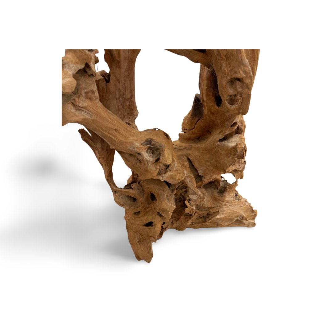 Tato dekorace z masivního teakového dřeva vznikla z kořene stromu a zaujme svým přirozeným, sochařským tvarem. Neopracované linie, surová struktura a jedinečná kresba dřeva dělají z každého kusu originál, který nelze přesně zopakovat.
