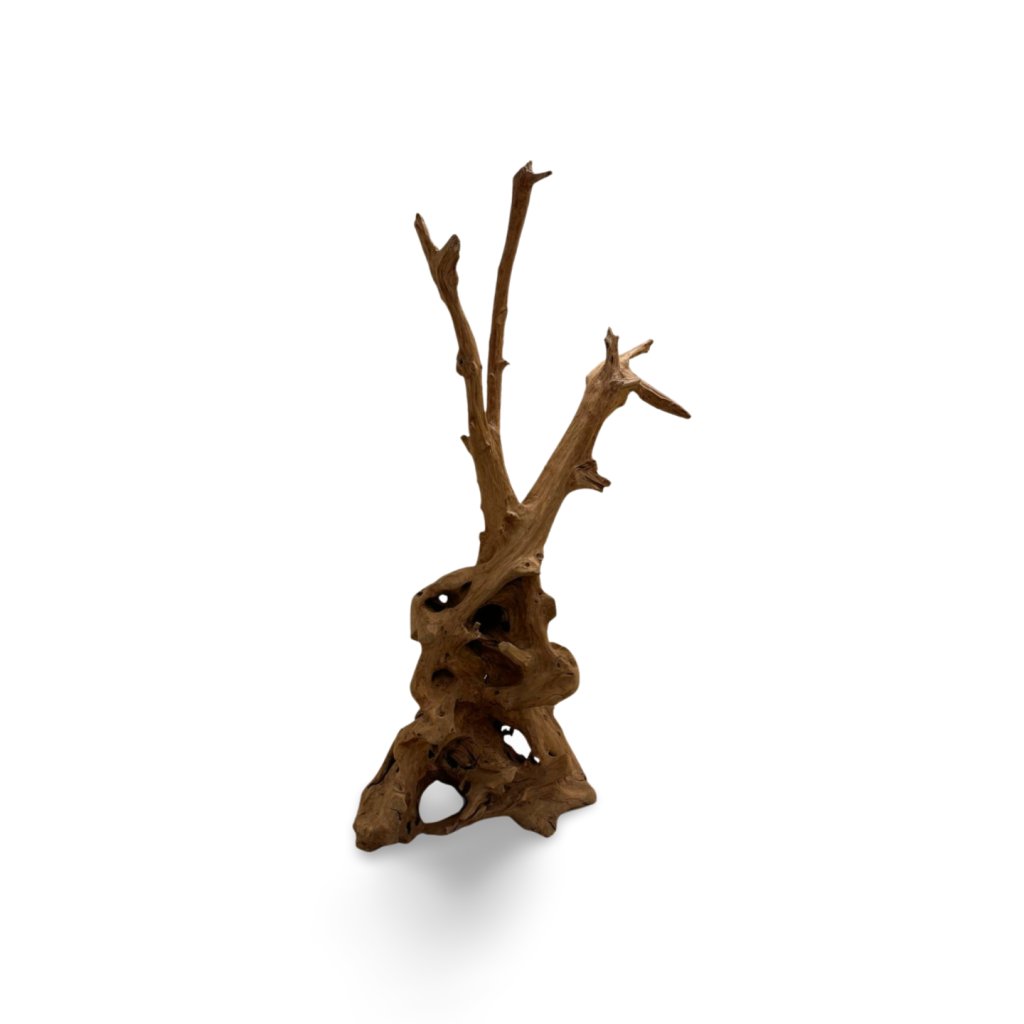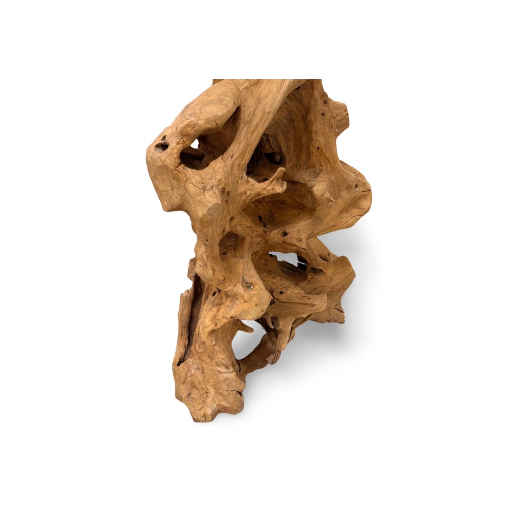 Tato dekorace z masivního teakového dřeva vznikla z kořene stromu a zaujme svým přirozeným, sochařským tvarem. Neopracované linie, surová struktura a jedinečná kresba dřeva dělají z každého kusu originál, který nelze přesně zopakovat.