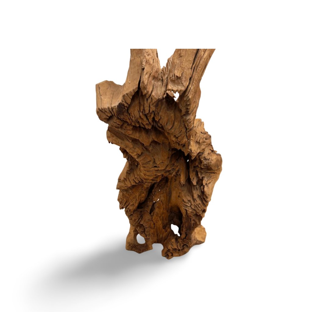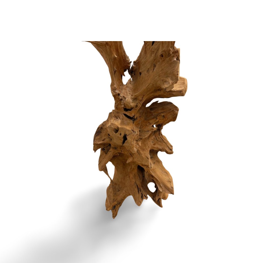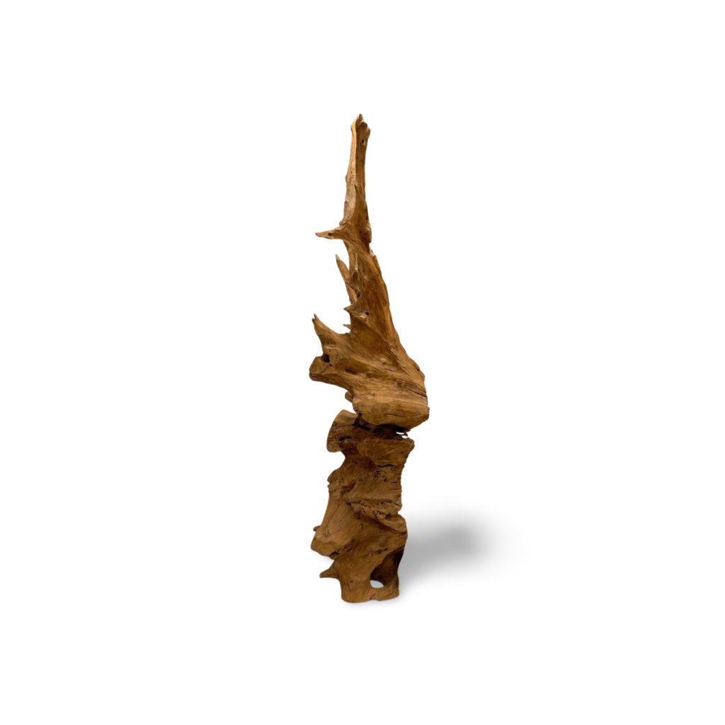 Tato dekorace z masivního teakového dřeva vznikla z kořene stromu a zaujme svým přirozeným, sochařským tvarem. Neopracované linie, surová struktura a jedinečná kresba dřeva dělají z každého kusu originál, který nelze přesně zopakovat.