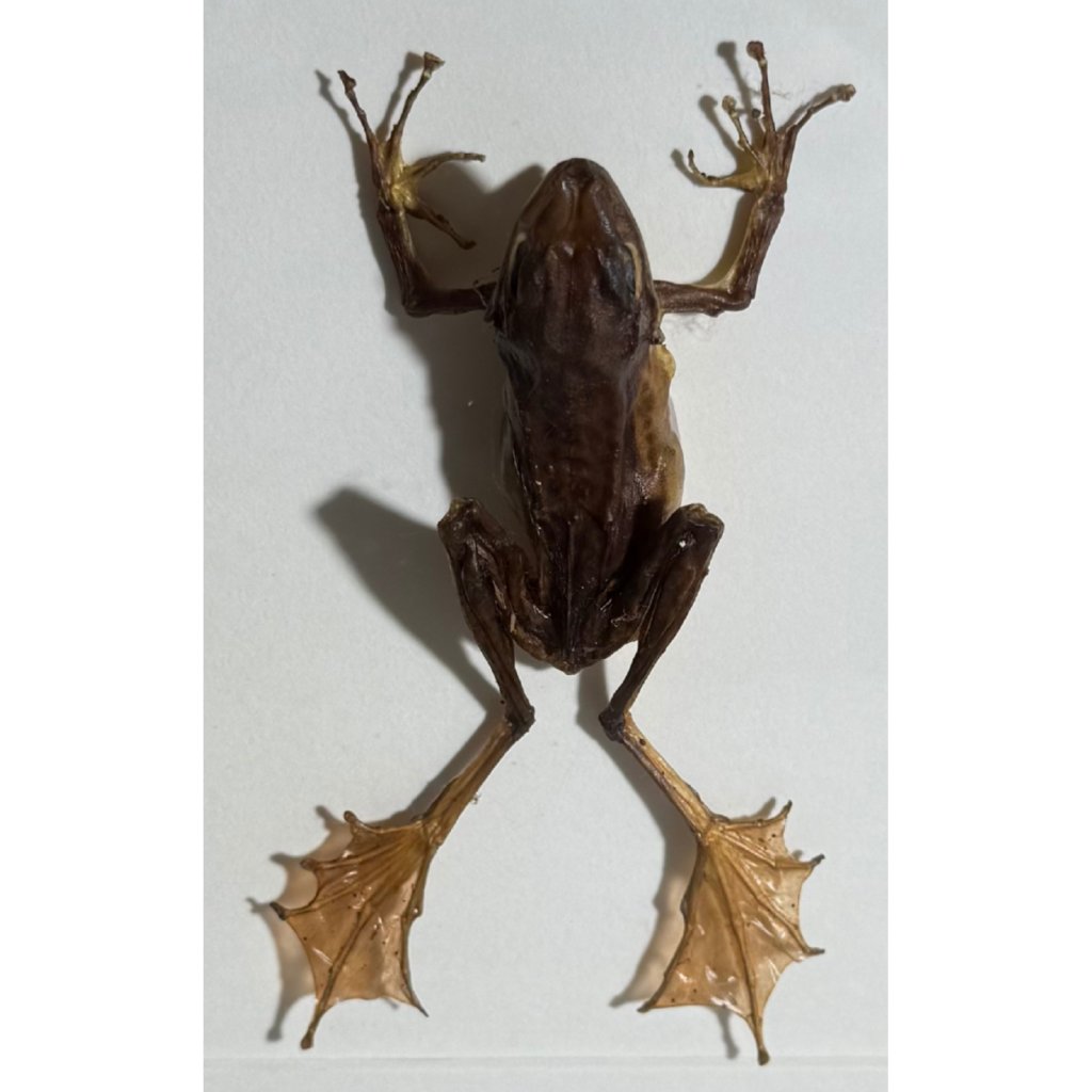 Tato taxidermicky preparovaná žába vyniká neobvyklými zadními končetinami, které jsou zakončeny širokými ploutvovitými výběžky. Je pečlivě zasazena do jednoduchého rámečku, který podtrhuje její jedinečnou stavbu těla i exotický vzhled. Dekorace působí jako sběratelský kousek z přírodovědného kabinetu a přináší do interiéru dotek divočiny i fascinujícího detailu. Ideální pro všechny, kteří hledají neobvyklý akcent s příběhem.