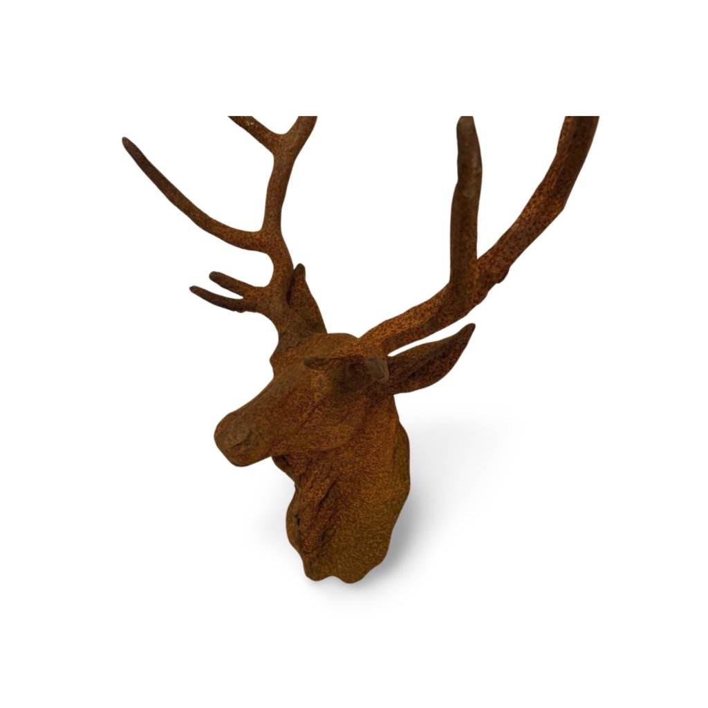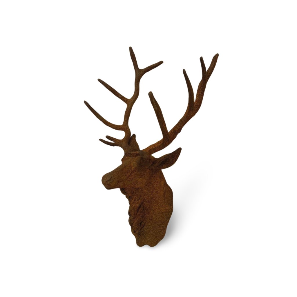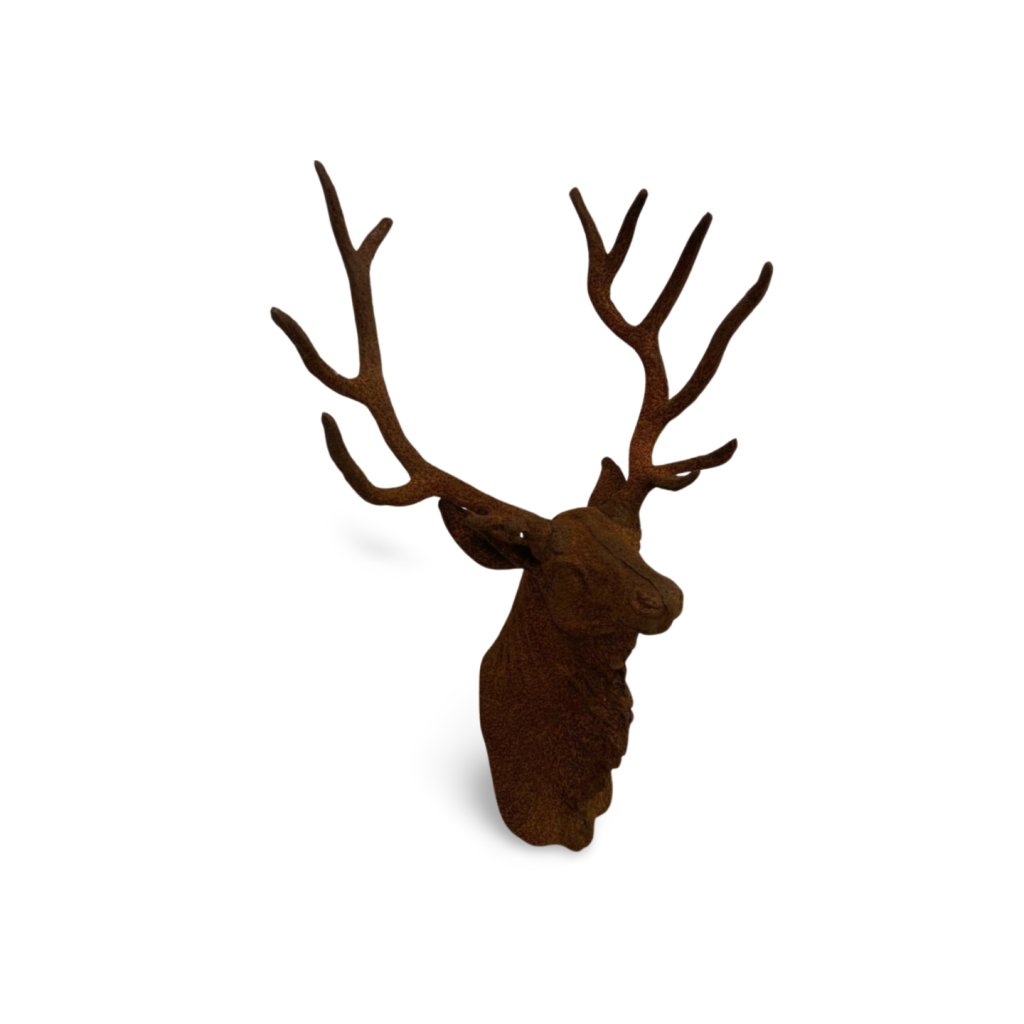 Kovové provedení zajišťuje pevnost, dlouhou životnost a stabilitu. Povrchová úprava s patinou podtrhuje strukturu materiálu a dodává dekoraci lehce industriální, ale zároveň elegantní vzhled. Díky tomu se hlava jelena skvěle hodí do rustikálních, industriálních i moderních interiérů.