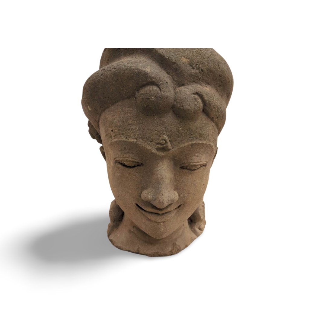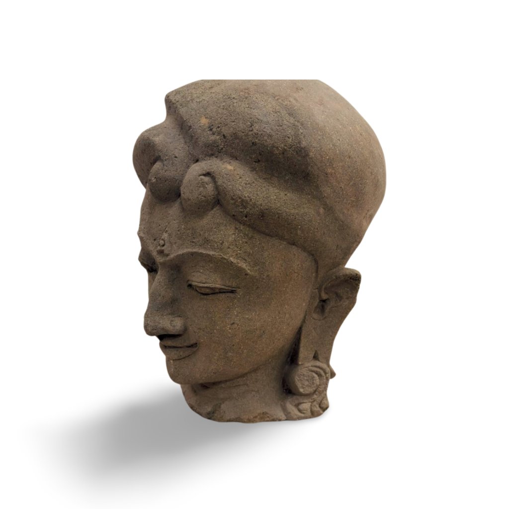 Dekorativní soška ženské hlavy vytesaná z masivního kamene pochází z Indonésie, kde je tradiční kamenosochařství součástí místní řemeslné kultury. Socha zaujme především klidným výrazem obličeje, jemně zavřenýma očima a stylizovaným účesem, který vytváří elegantní siluetu celé dekorace.