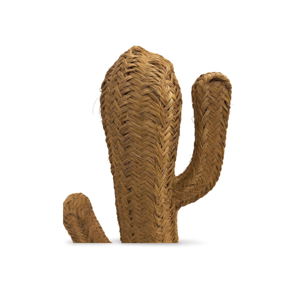Dekorativní kaktus z ručně pletené přírodní trávy je výrazným a zároveň jemným prvkem interiéru. Jeho strukturovaný povrch vytváří zajímavou hru světla a stínu a dodává prostoru hloubku i teplo.