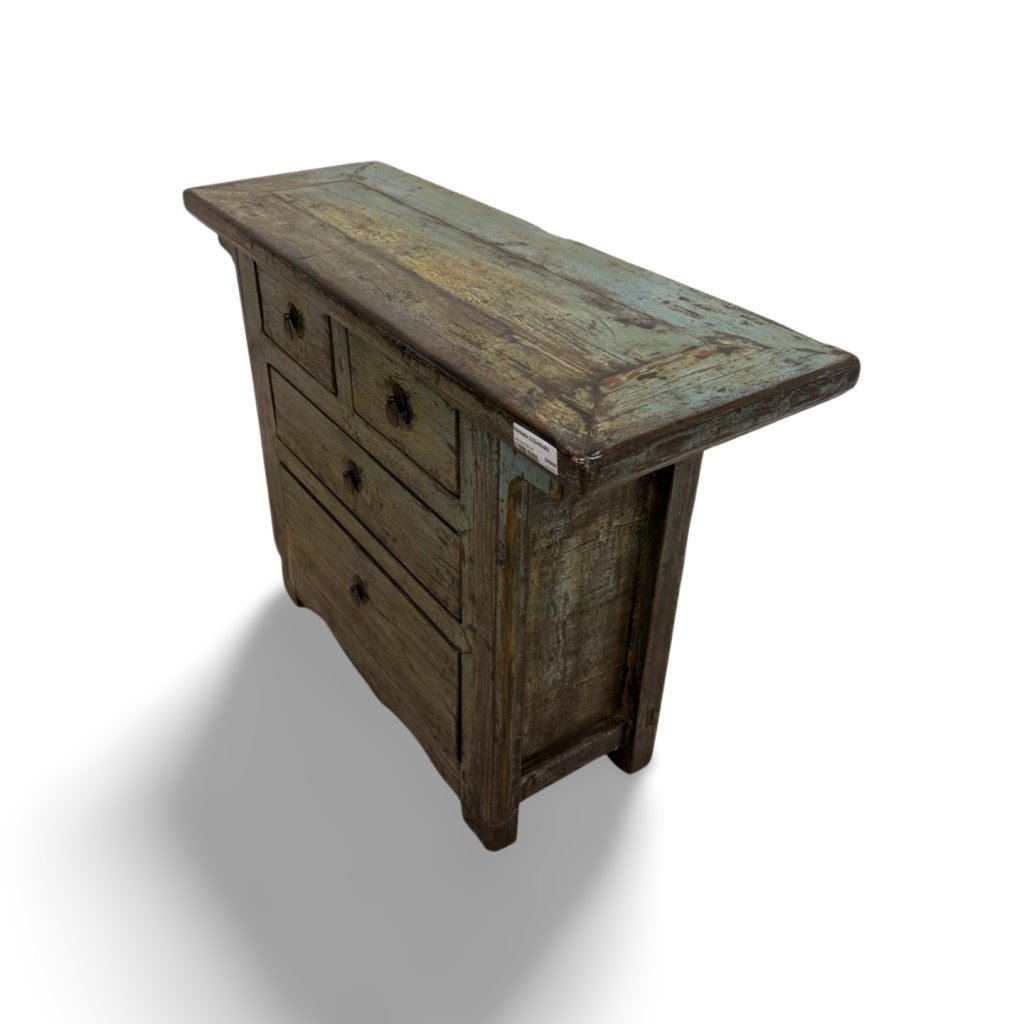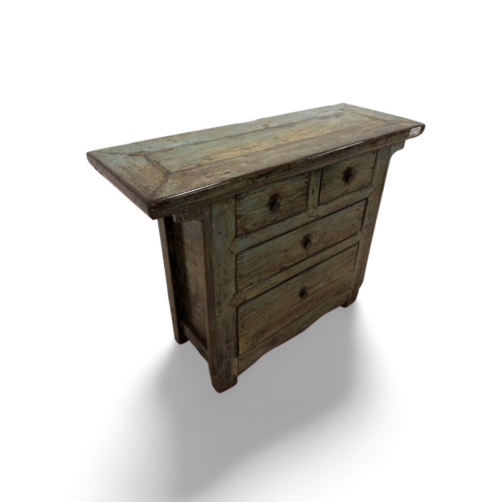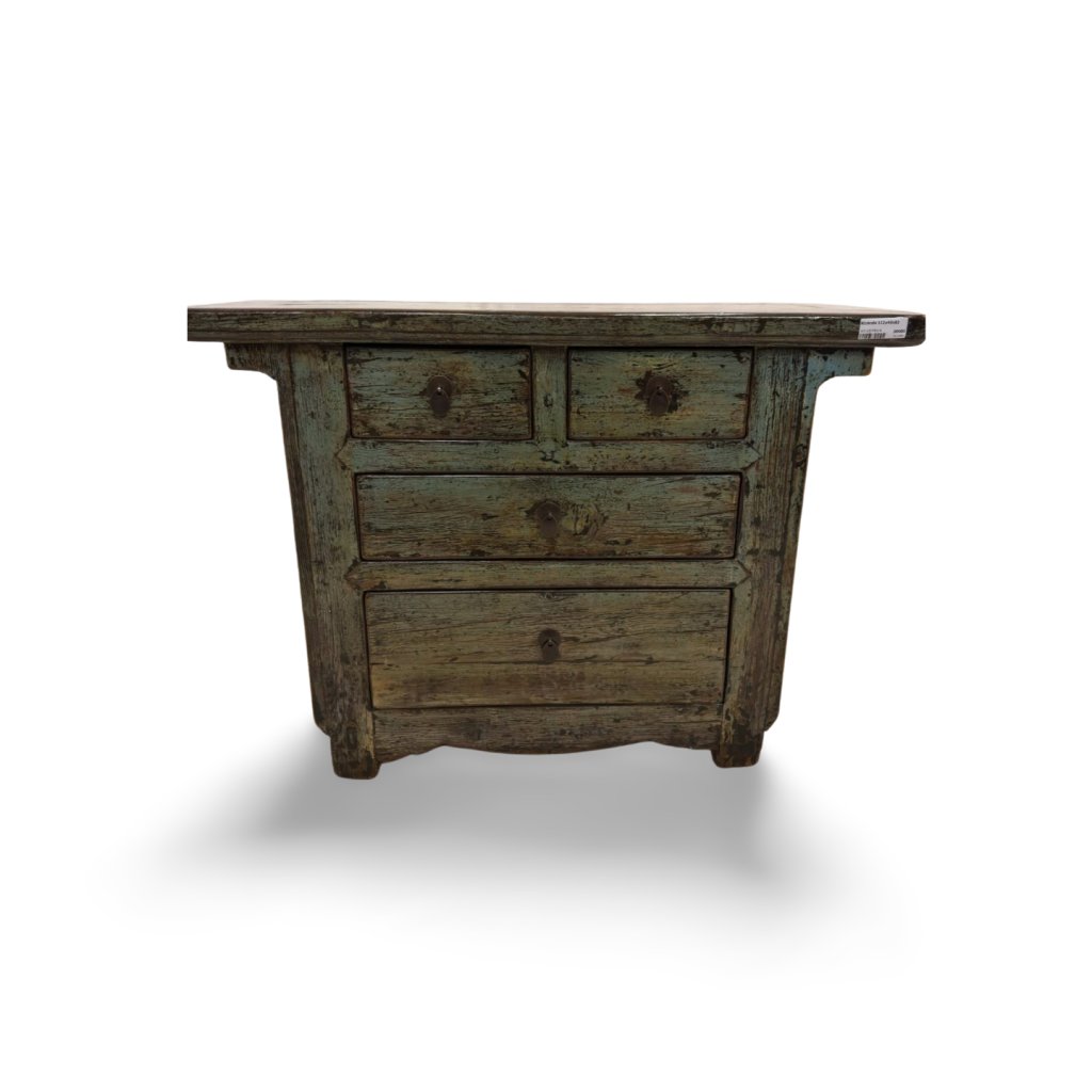 Tato originální čínská lakovaná komoda je vyrobena z masivního dřeva a představuje typický příklad tradičního asijského nábytku. Charakteristická barevná patina a ručně opracovaný povrch dodávají komodě jedinečný vzhled a autentický charakter.