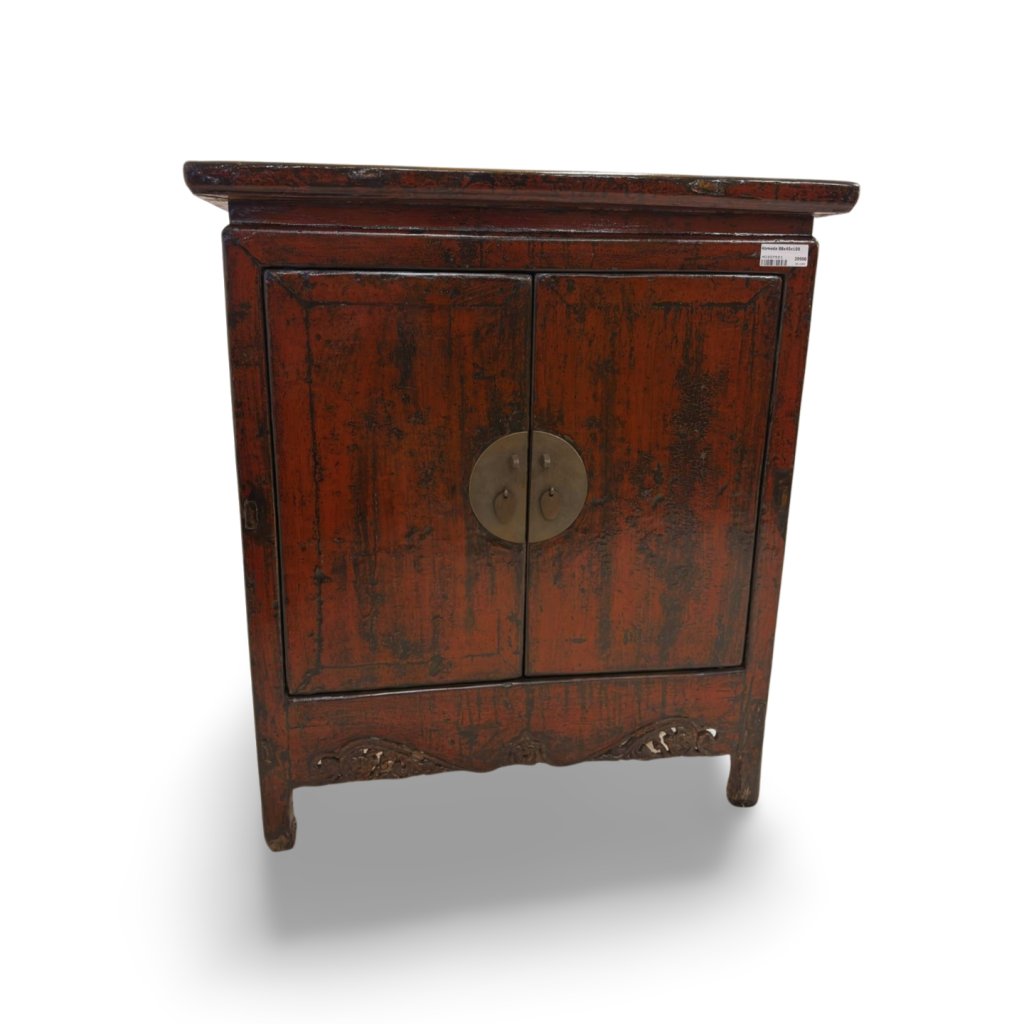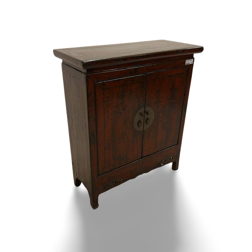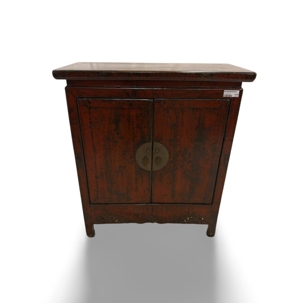 Komoda je vybavena dvoukřídlými dvířky s typickým kovovým kováním, které je pro čínský nábytek velmi charakteristické. Za dvířky se nachází praktický úložný prostor vhodný pro ukládání různých předmětů v domácnosti.