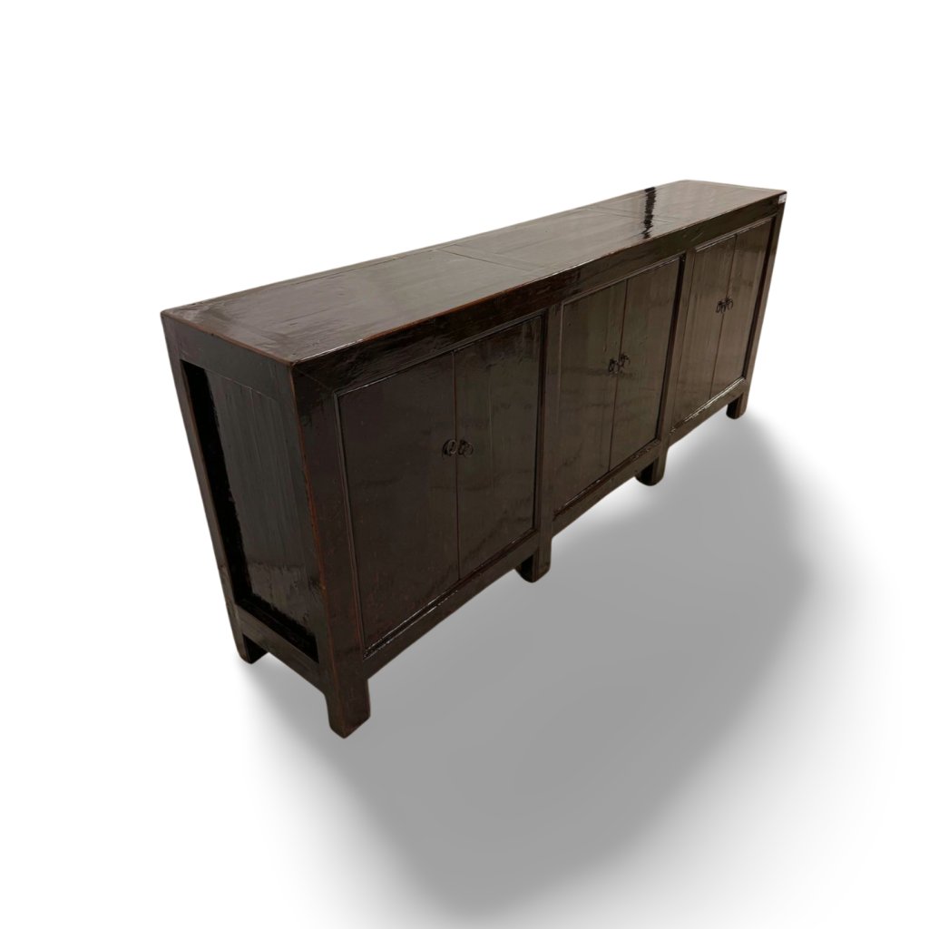 Tato čínská komoda z masivního dřeva v černém lakovaném provedení je výrazným, ale zároveň elegantním prvkem interiéru. Tradiční čínský design v kombinaci s hlubokou černou barvou vytváří nadčasový kus, který se snadno kombinuje s moderním i klasickým vybavením.