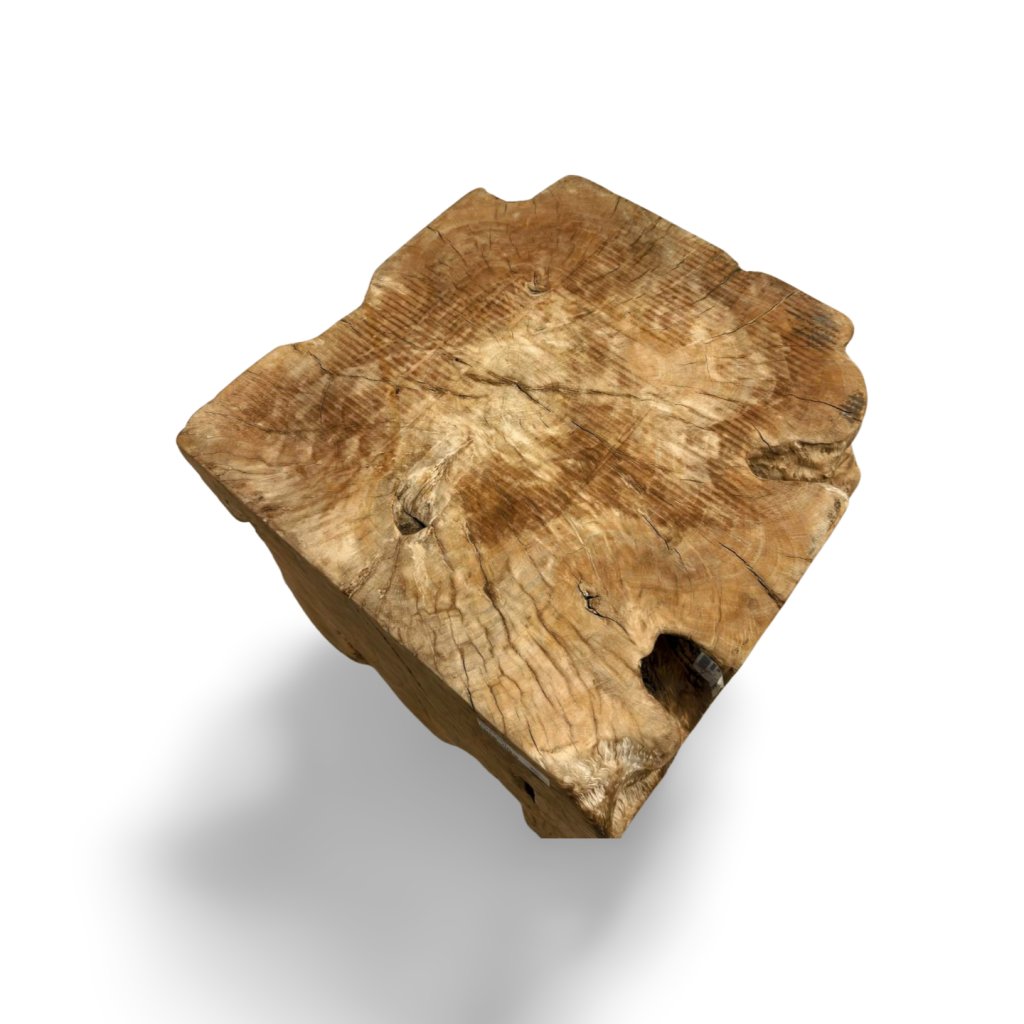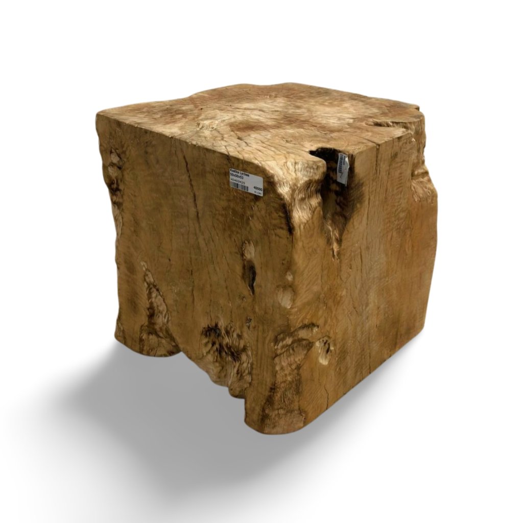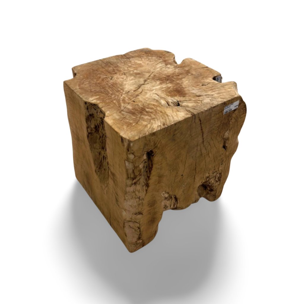 Díky své masivní konstrukci a vysoké hmotnosti působí kostka velmi stabilně a robustně. Každý kus je originální a může se lišit kresbou dřeva, odstínem nebo drobnými přirozenými prasklinami, které jsou typickou vlastností masivního dřeva.