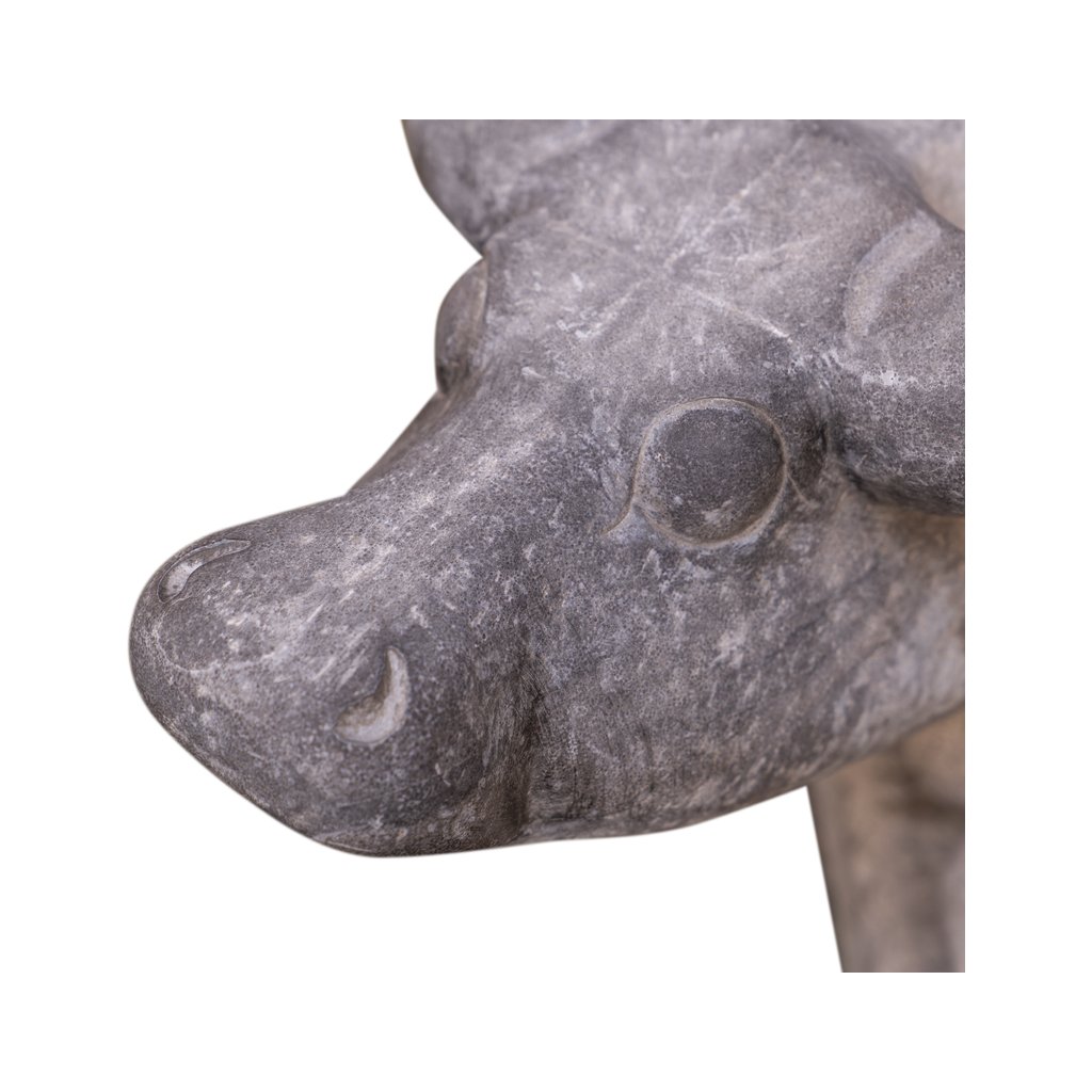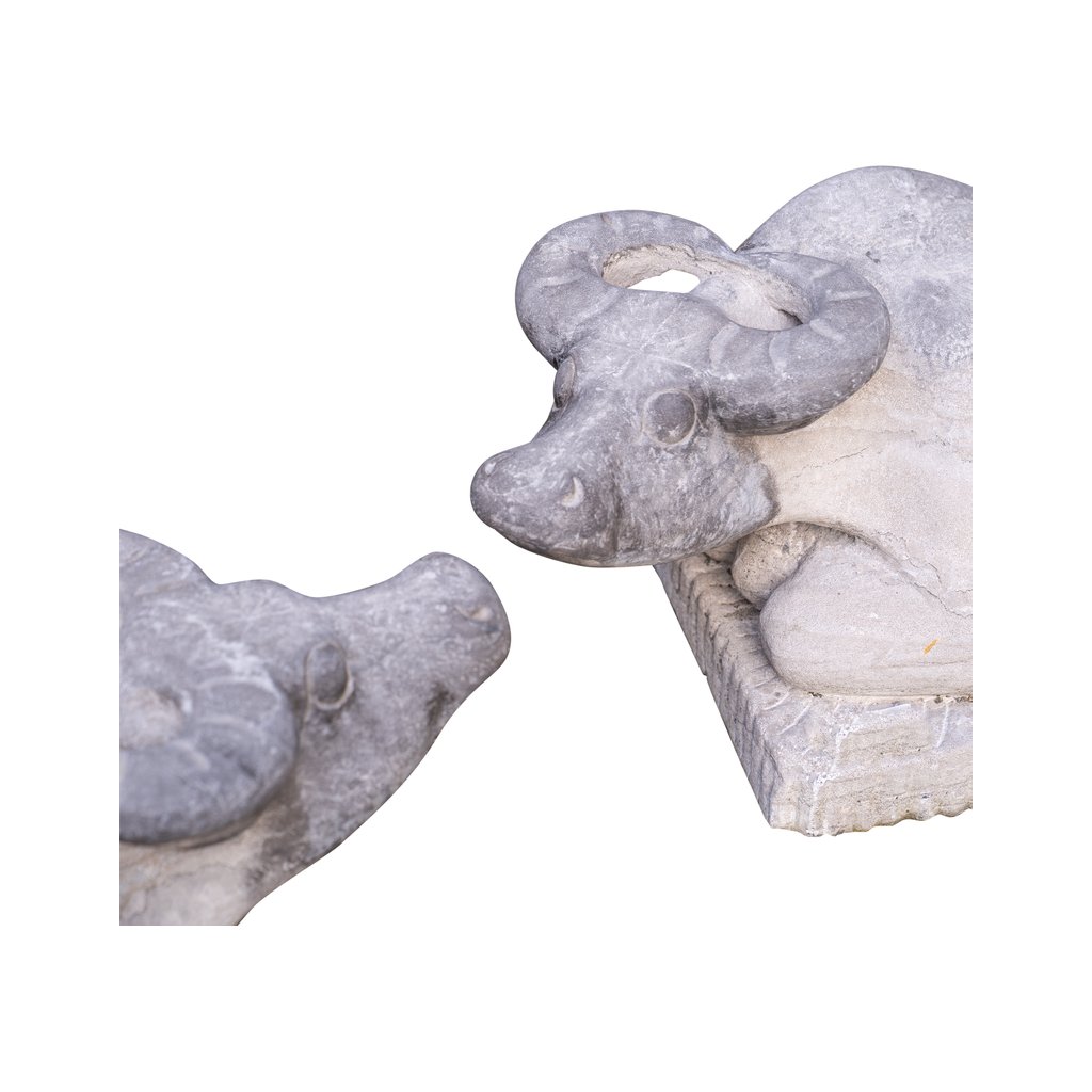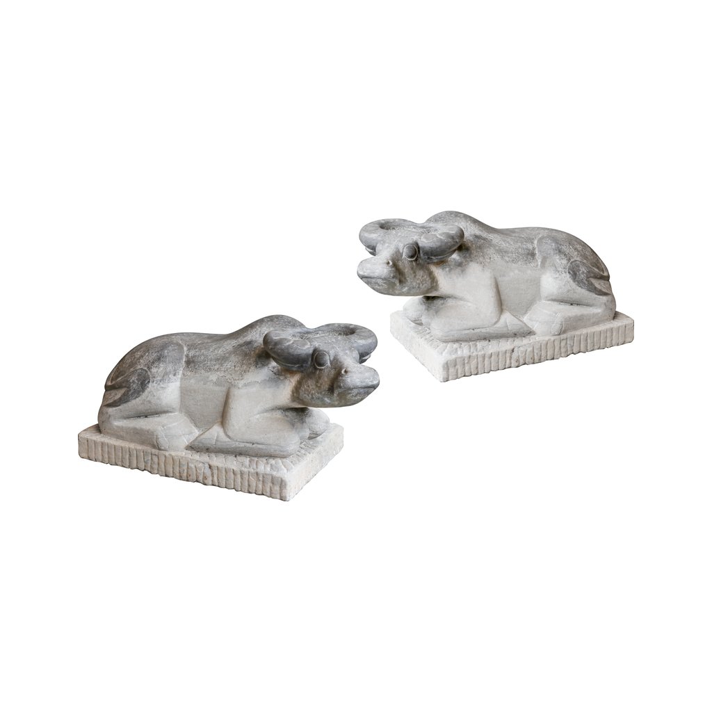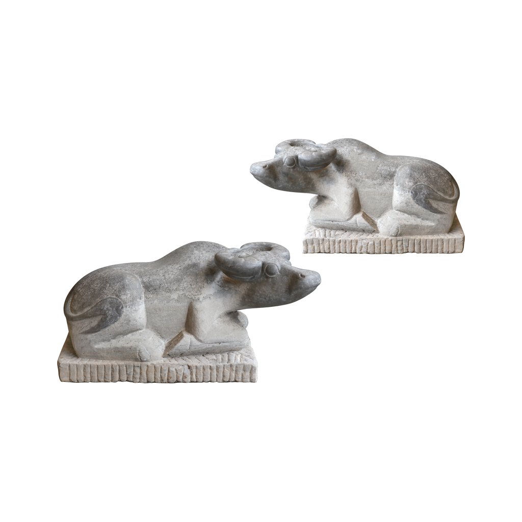 Tento impozantní set dvou soch ležících krav z čínské žuly v sobě snoubí sílu, klid a řemeslnou preciznost. Obě sochy jsou pečlivě vytesané s důrazem na detail – od výrazu ve tváři až po realistické zpracování svalů a tvaru těla. Žula jim propůjčuje nejen váhu a odolnost, ale i jedinečnou texturu a barevnou kresbu, díky které působí monumentálně i v klidné poloze. Ideální jako sochařský prvek pro exteriér, zahradu nebo reprezentativní prostor.
