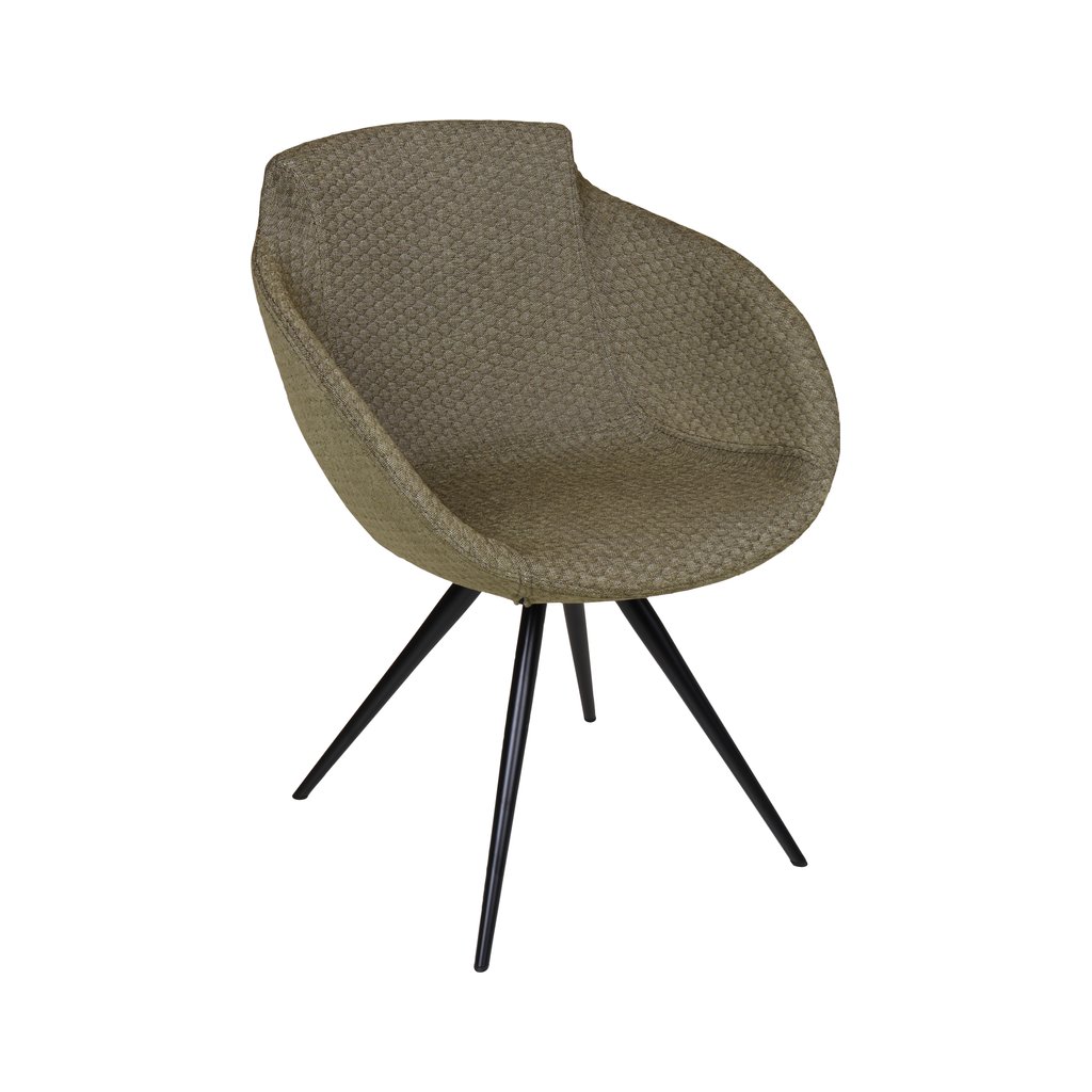 Ergonomicky tvarovaná skořepina poskytuje komfortní oporu zad i paží a vybízí k pohodlnému posezení. Kovová podnož v černém provedení zajišťuje stabilitu a dodává křeslu lehkost a moderní charakter.
