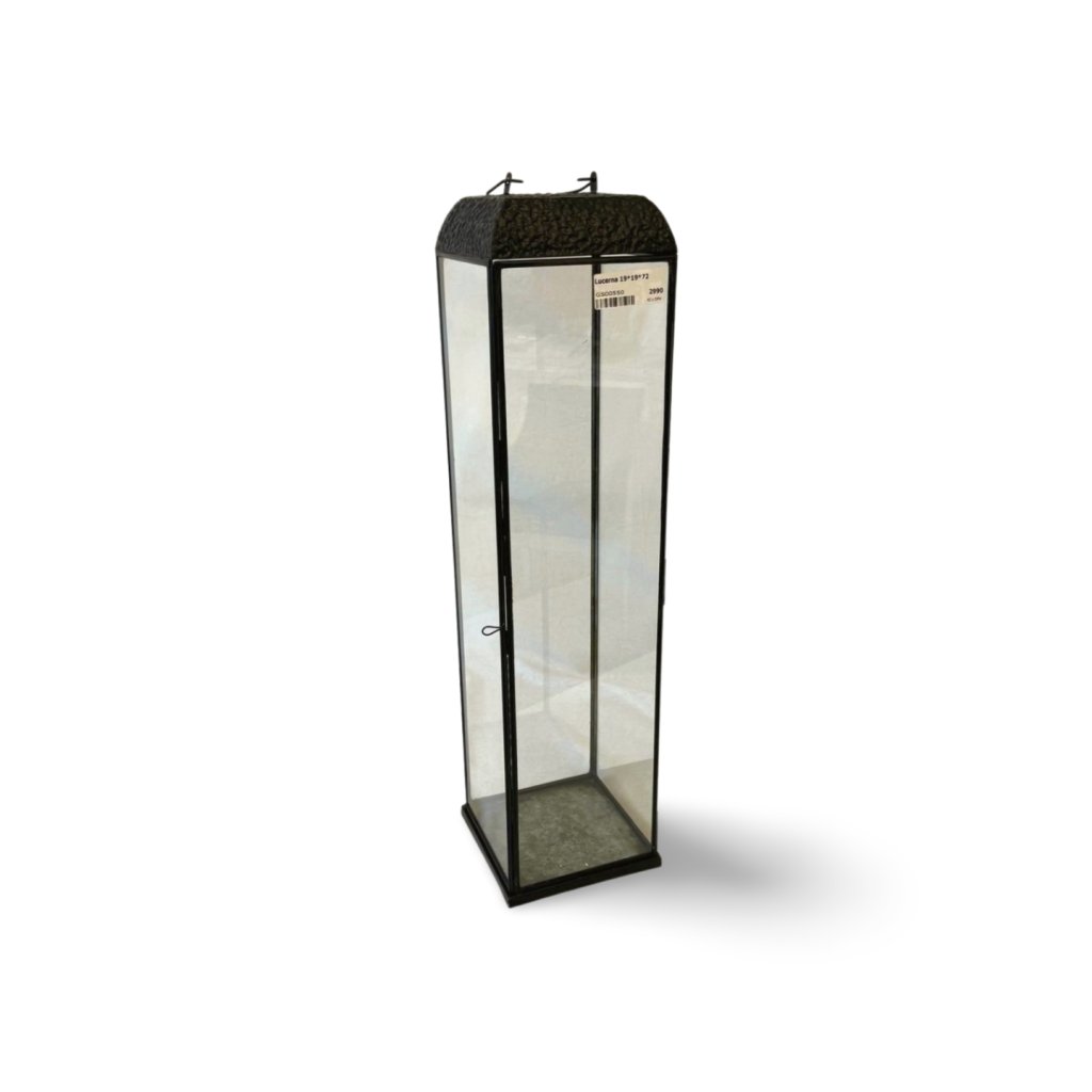 Kovový rám zajišťuje stabilitu a dlouhou životnost, zatímco skleněné stěny dodávají lucerně lehkost a eleganci. Díky svému jednoduchému, nadčasovému designu se lucerna snadno začlení do moderních, industriálních i klasických interiérů.