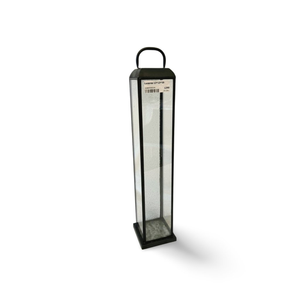 Jednoduchá kovová konstrukce zajišťuje stabilitu a dlouhou životnost, zatímco čistý, vysoký tvar působí elegantně a nadčasově. Díky neutrálnímu provedení se lucerna snadno kombinuje s moderními, industriálními i minimalistickými interiéry.