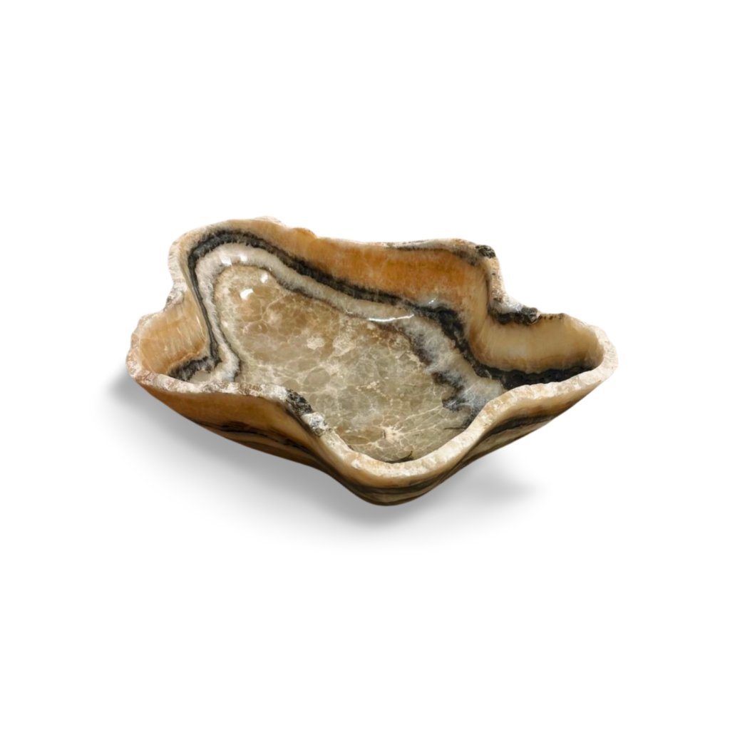 Tato mísa z přírodního onyxu zaujme svou bohatou strukturou, výrazným vrstvením a přirozenými barevnými přechody. Onyx je ceněný přírodní kámen, který vyniká hloubkou, poloprůsvitností a jedinečnou kresbou, díky čemuž působí mimořádně elegantně a luxusně.
