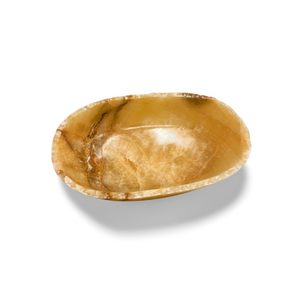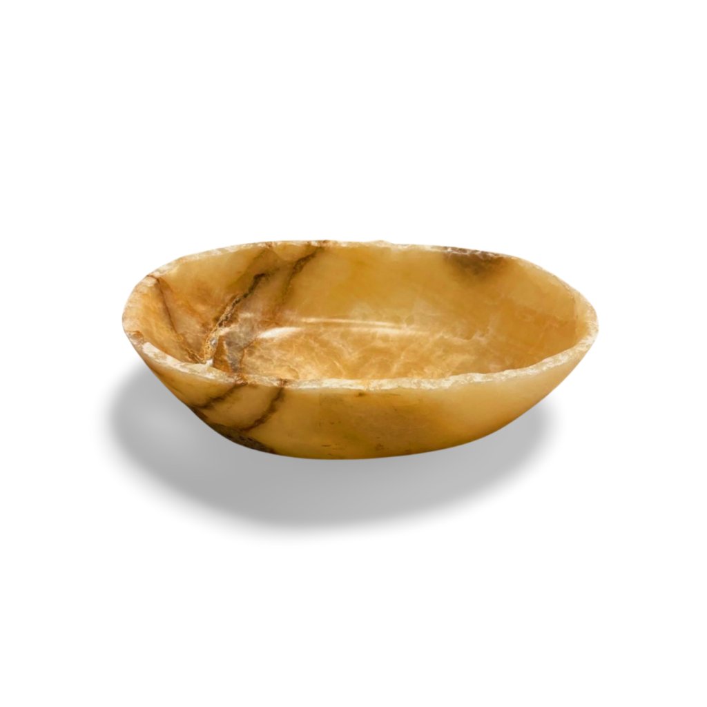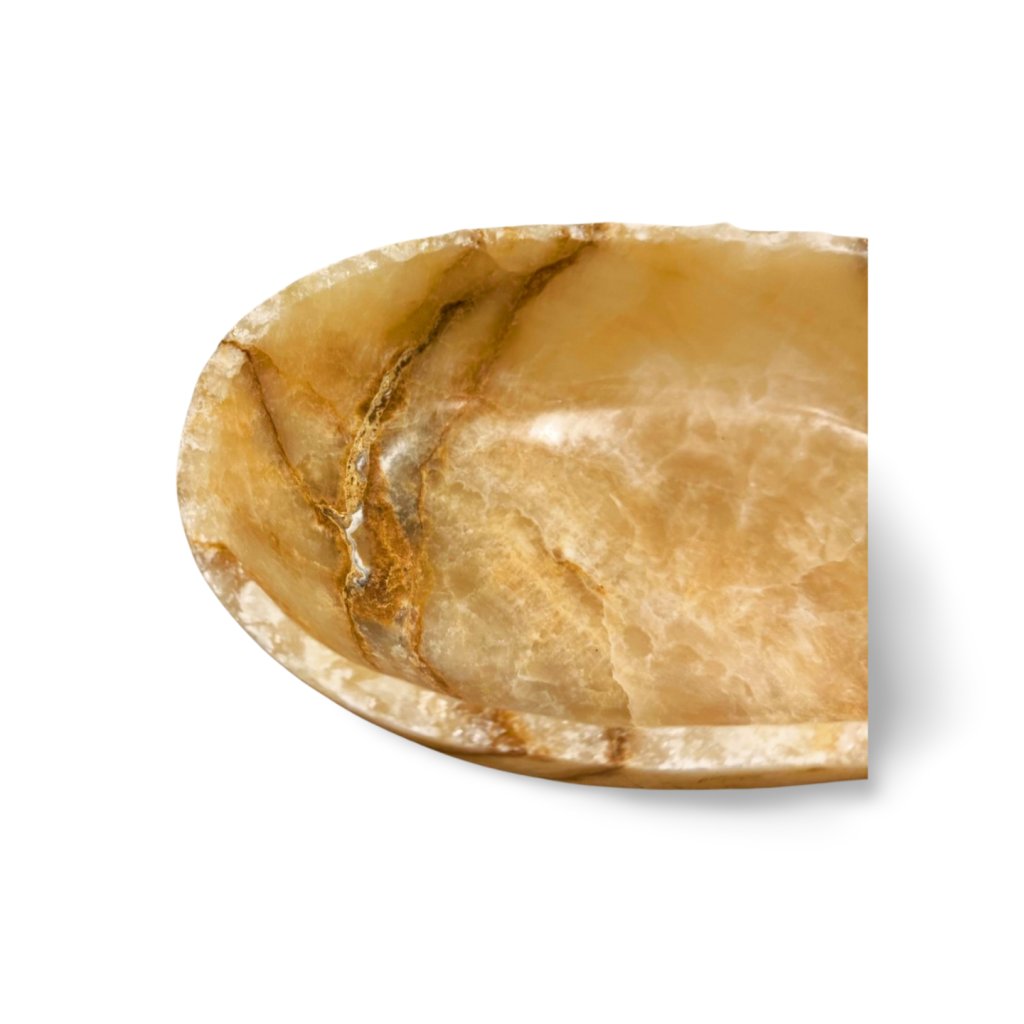 Každý kus je ručně opracovaný a jedinečný. Mírně nepravidelný tvar a přirozeně tvarovaný okraj podtrhují přírodní původ kamene. Jemné žilkování a barevné přechody jsou charakteristickým znakem onyxu a zaručují, že žádné dvě mísy nejsou totožné.