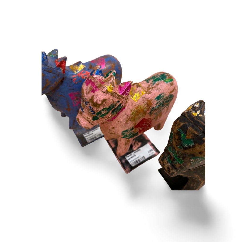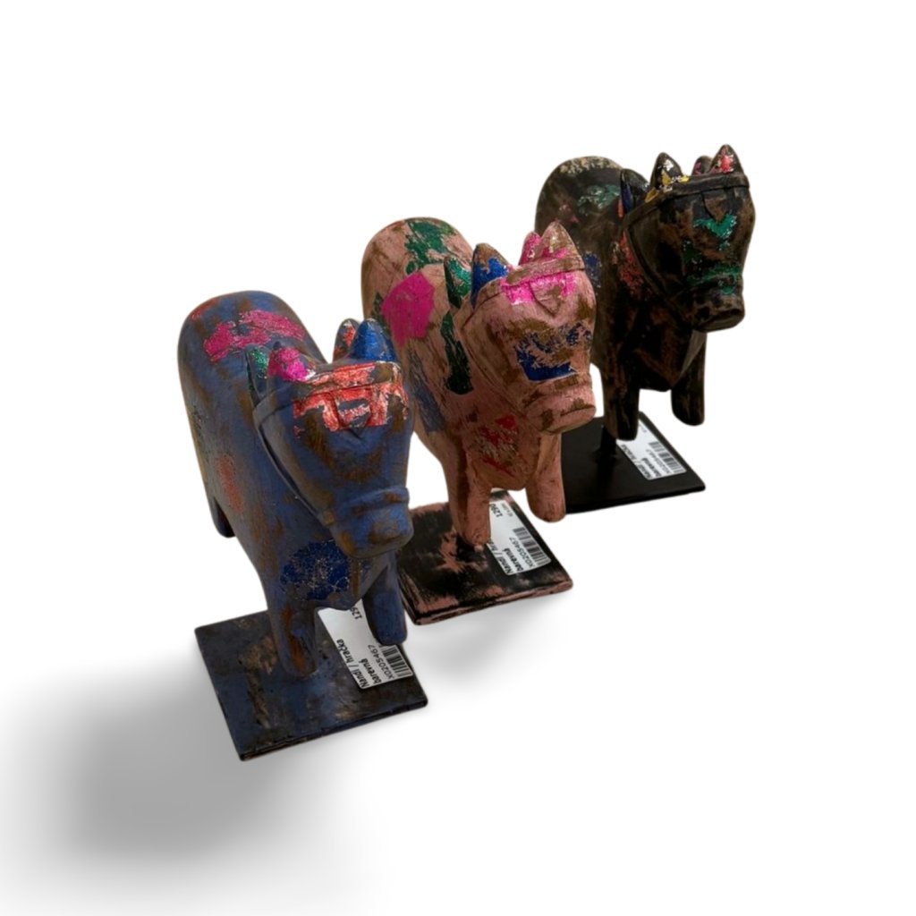 Dekorace je dostupná ve třech barevných variantách – růžové, modré a černé. Výrazné barevné akcenty, místy záměrně nepravidelná patina a ruční malba podtrhují autentický původ a řemeslné zpracování. Každá figurka je upevněna na stabilním podstavci, díky čemuž se hodí k vystavení na polici, komodě, pracovním stole nebo v dětském pokoji.