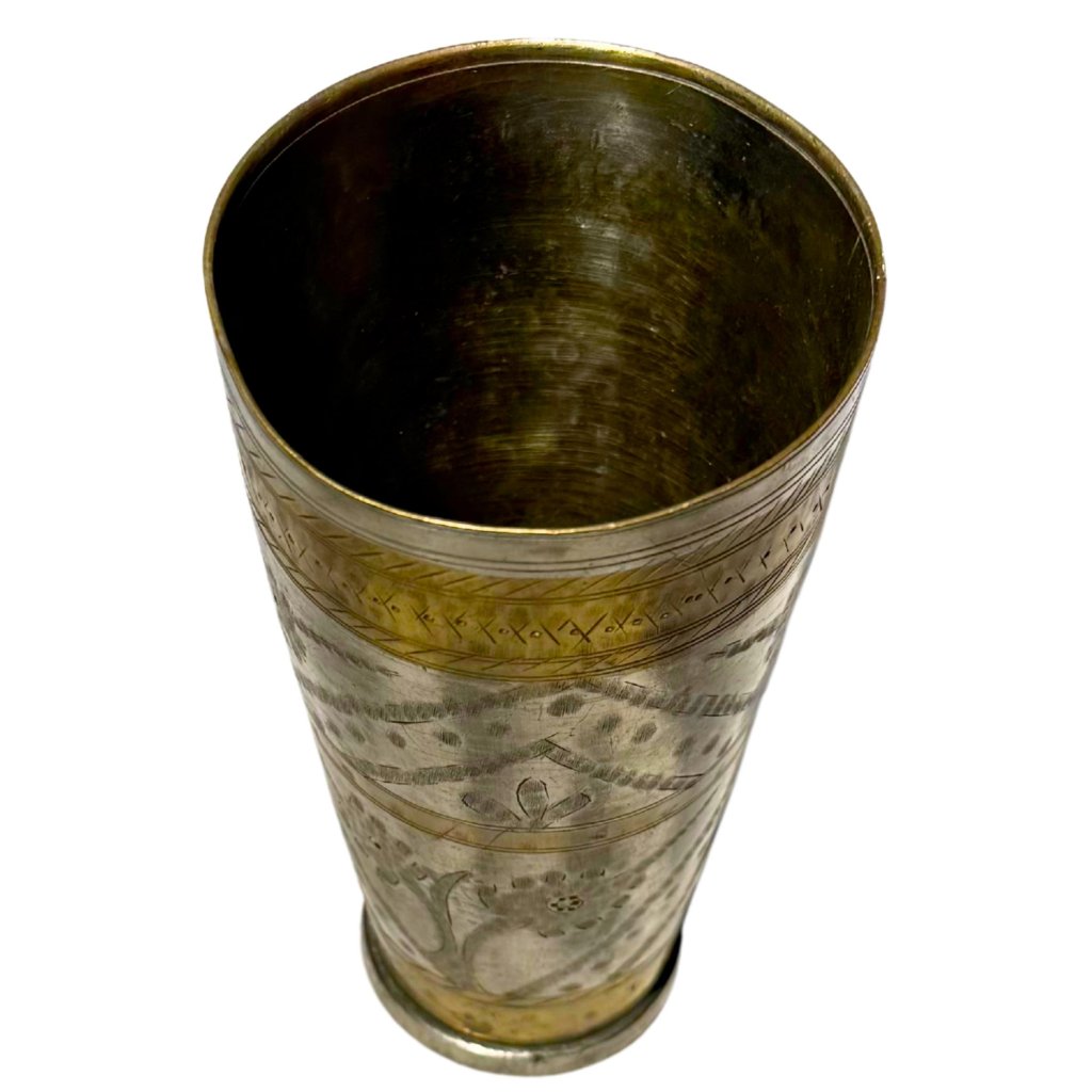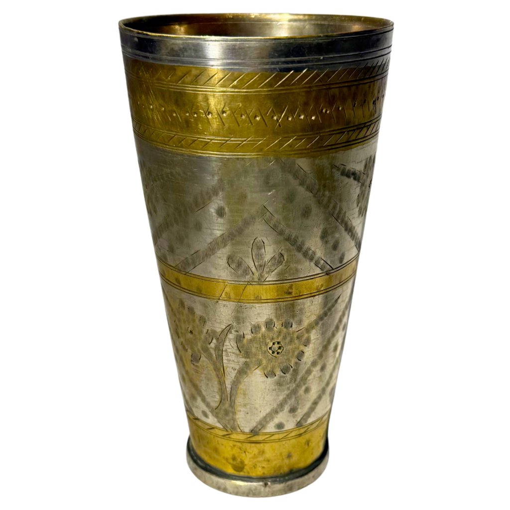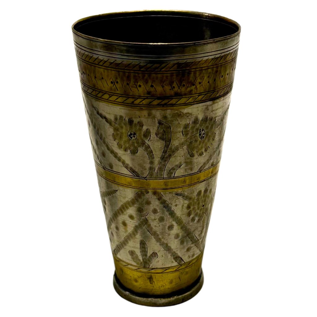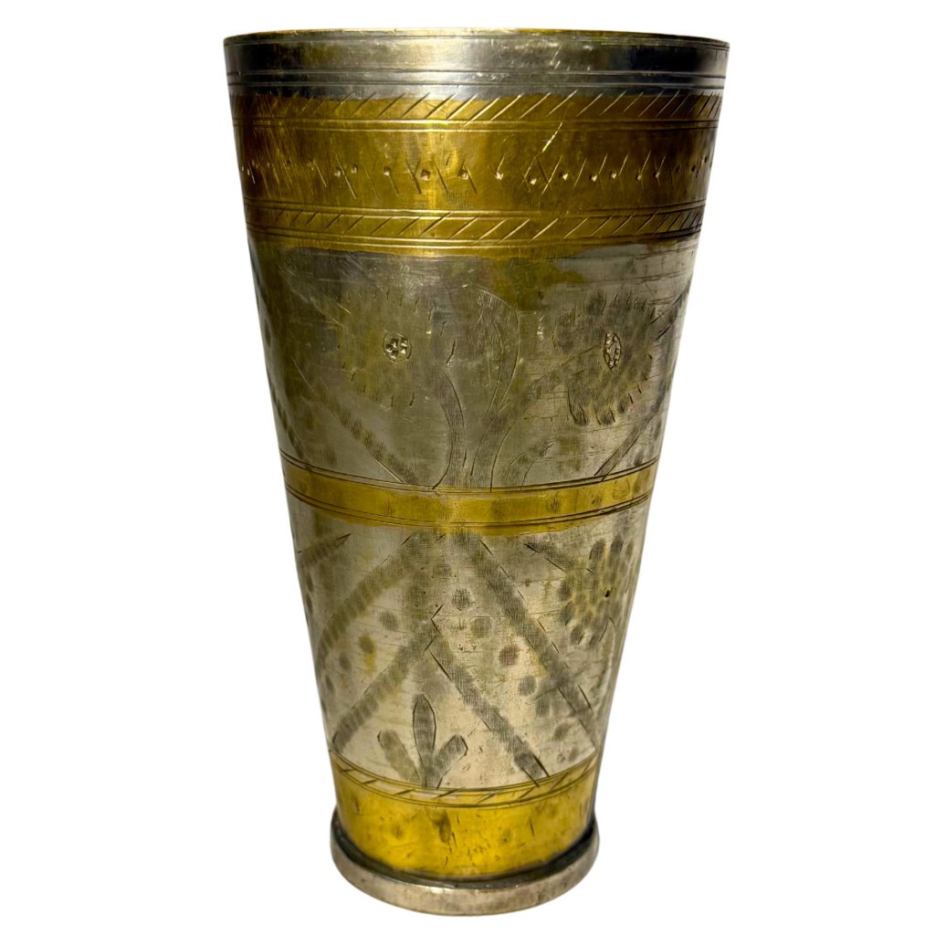 | Tento indický kovový pohár je krásným spojením tradičního řemesla a elegantního designu. Je zdoben jemnými rytinami, které vytvářejí komplexní vzory, a zlatým ornamentem, jenž poháru dodává nádech luxusu a historického šarmu. Každý detail je pečlivě vypracován, což podtrhuje jeho unikátní charakter a kvalitu. Tento pohár je skvostným příkladem indické kovotepecké tradice, která se vyznačuje precizností a uměleckou zručností. Je to ideální doplněk pro milovníky orientálního umění nebo pro ty, kdo si přejí obohatit svůj interiér o kousek historie. |