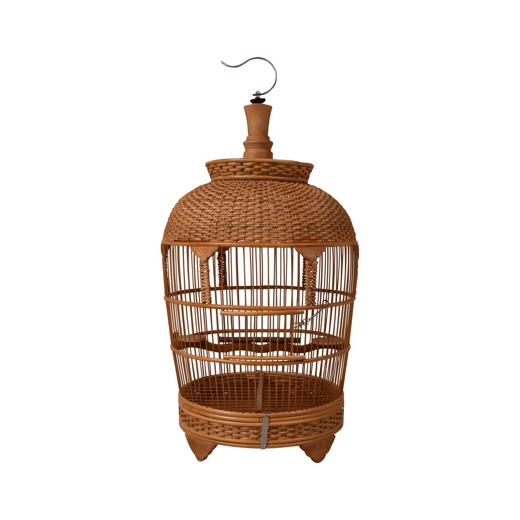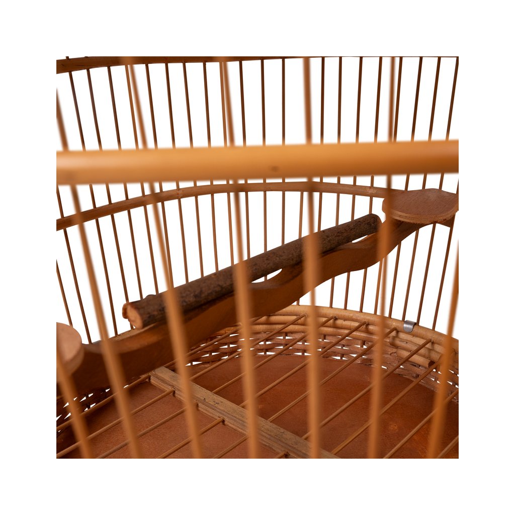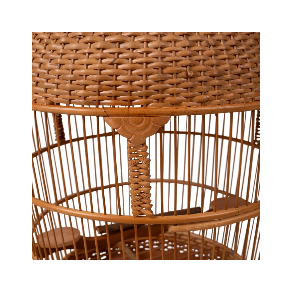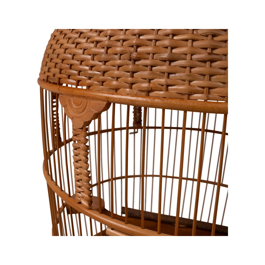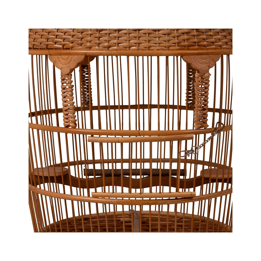 Tato dekorativní ptačí klec zaujme svým tradičním tvarem a pečlivým ručním zpracováním. Přírodní materiál v teplém hnědém odstínu dodává kleci autentický vzhled a lehce exotický charakter, který krásně zapadne do interiéru i krytých venkovních prostor.