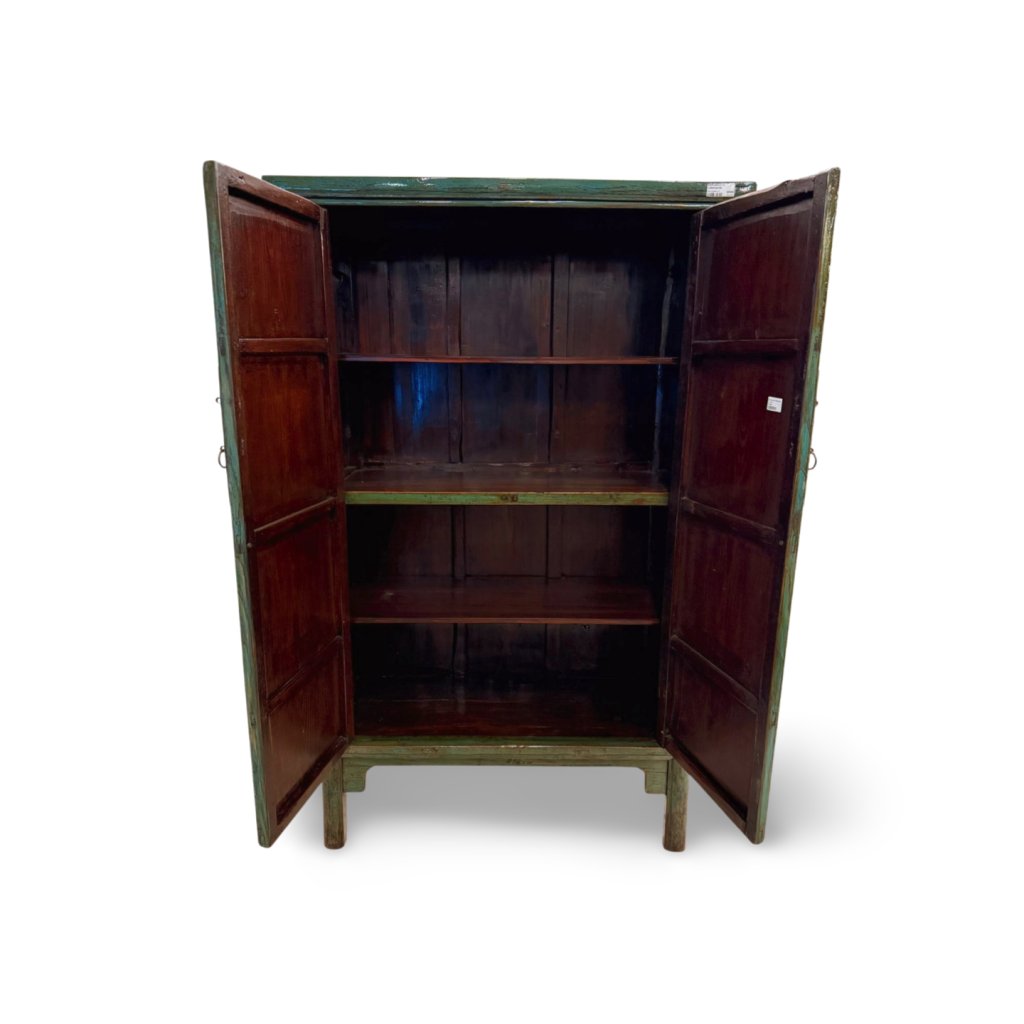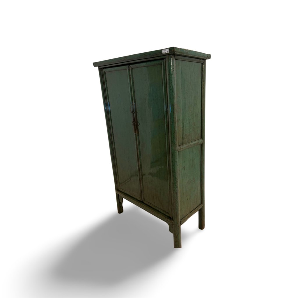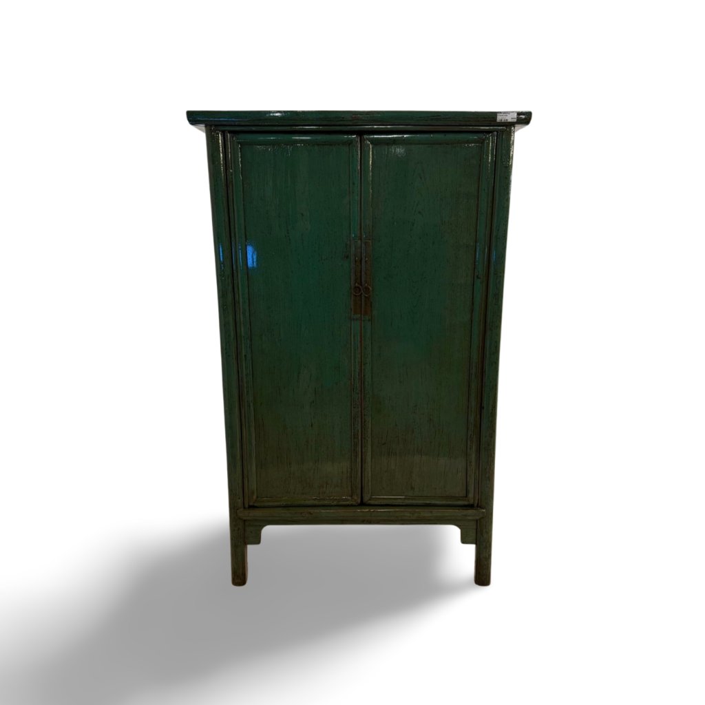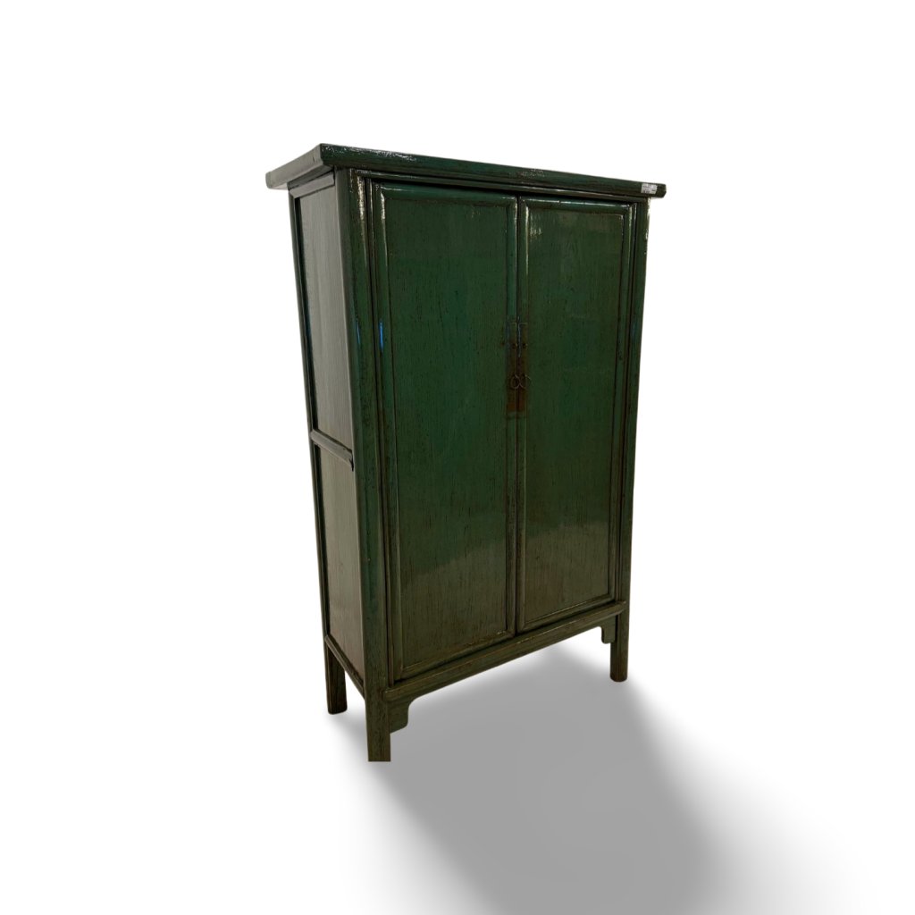 Tato čínská skříň v zeleném lakovaném provedení představuje nadčasový kus nábytku inspirovaný tradičním asijským designem. Hladké plochy, jednoduché linie a jemná patina vytvářejí harmonický celek, který působí klidně, vyváženě a velmi elegantně.