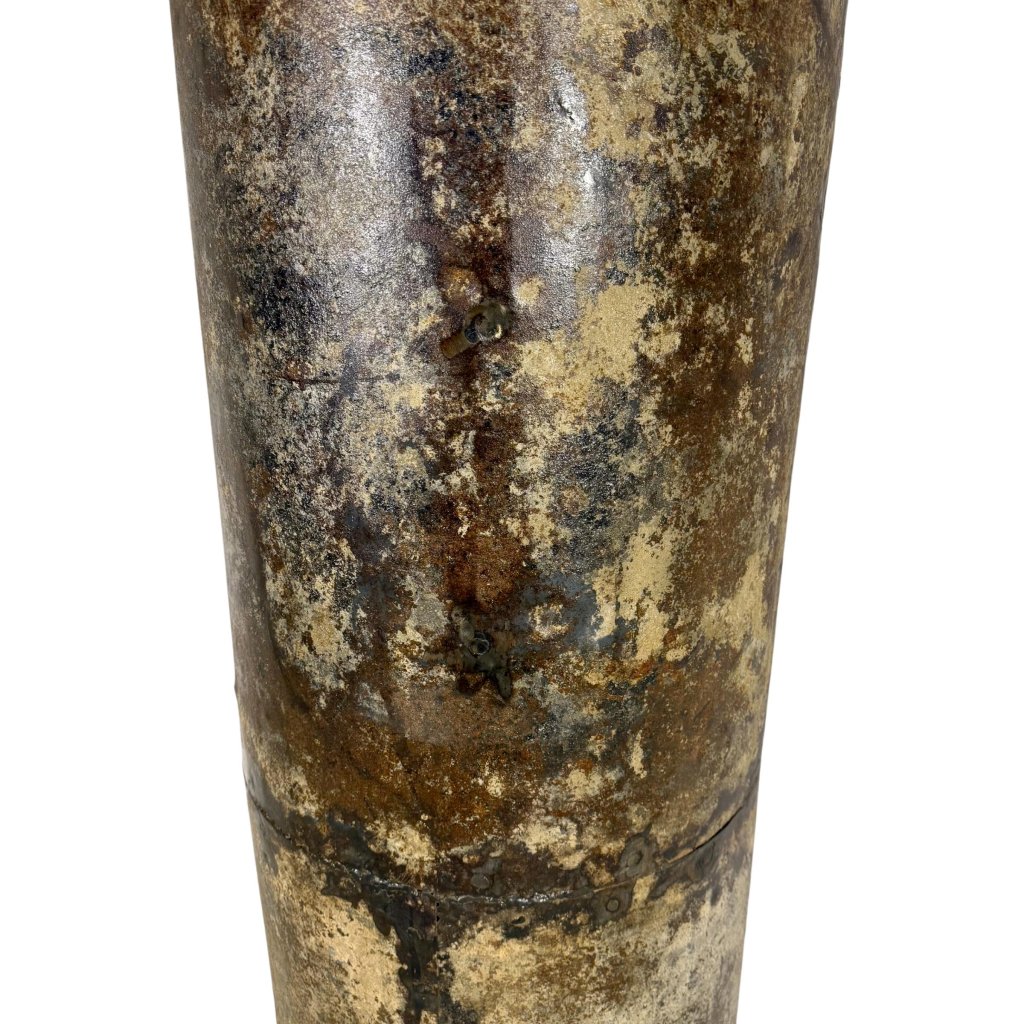 Tento jedinečný indický sloup je vytvořen z kovových plátů, které kdysi sloužily v rušných dílnách a na stavbách, kde byly svědky tvrdé práce a neúnavného lidského úsilí. Každý plát nese známky své minulosti – jemné nerovnosti, patinu a stopy původního využití, které mu dodávají nezaměnitelný charakter. Precizní spojení těchto prvků vytváří sloup s výraznou strukturou a industriálním kouzlem, jenž v sobě snoubí sílu materiálu s historií místa, odkud pochází. Ideální jako dekorativní prvek, který vnese do interiéru syrovou autenticitu a jedinečný příběh.Doplňkové parametry
