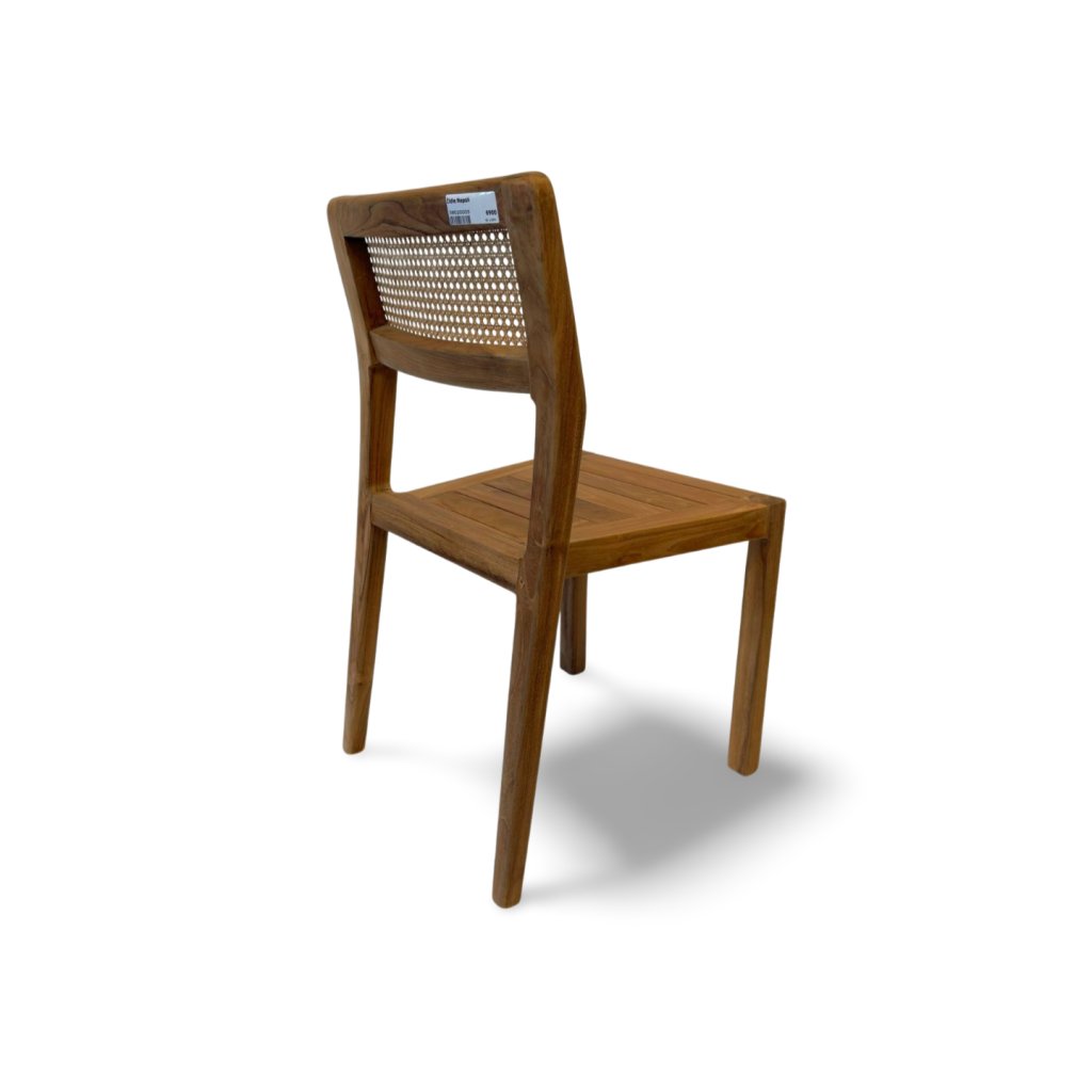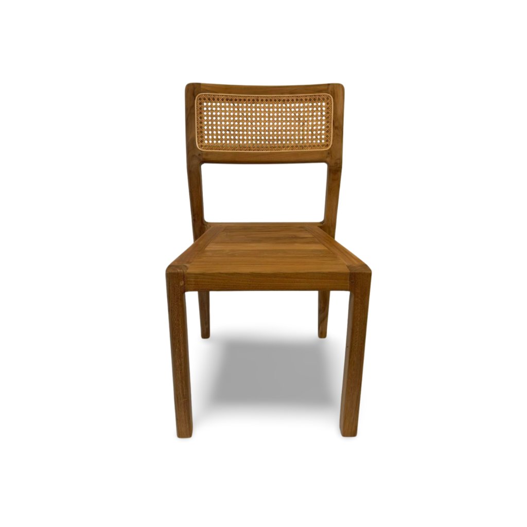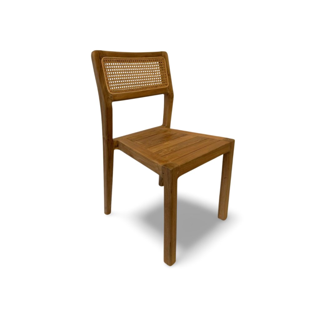 Opěrka zad je doplněna o ručně vyplétaný přírodní ratan, který židli dodává vzdušnost, pohodlí a jemný exotický akcent. Kombinace teaku a ratanu vytváří harmonický celek, který se skvěle hodí jak do moderních, tak i klasických či přírodně laděných interiérů.