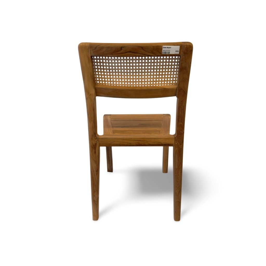 Židle Napoli spojuje nadčasový design, přírodní materiály a praktickou funkčnost. Konstrukce je vyrobena z kvalitního masivního teakového dřeva, které je známé svou pevností, dlouhou životností a krásnou kresbou. Sedák i nohy působí robustně, ale zároveň elegantně a lehce.