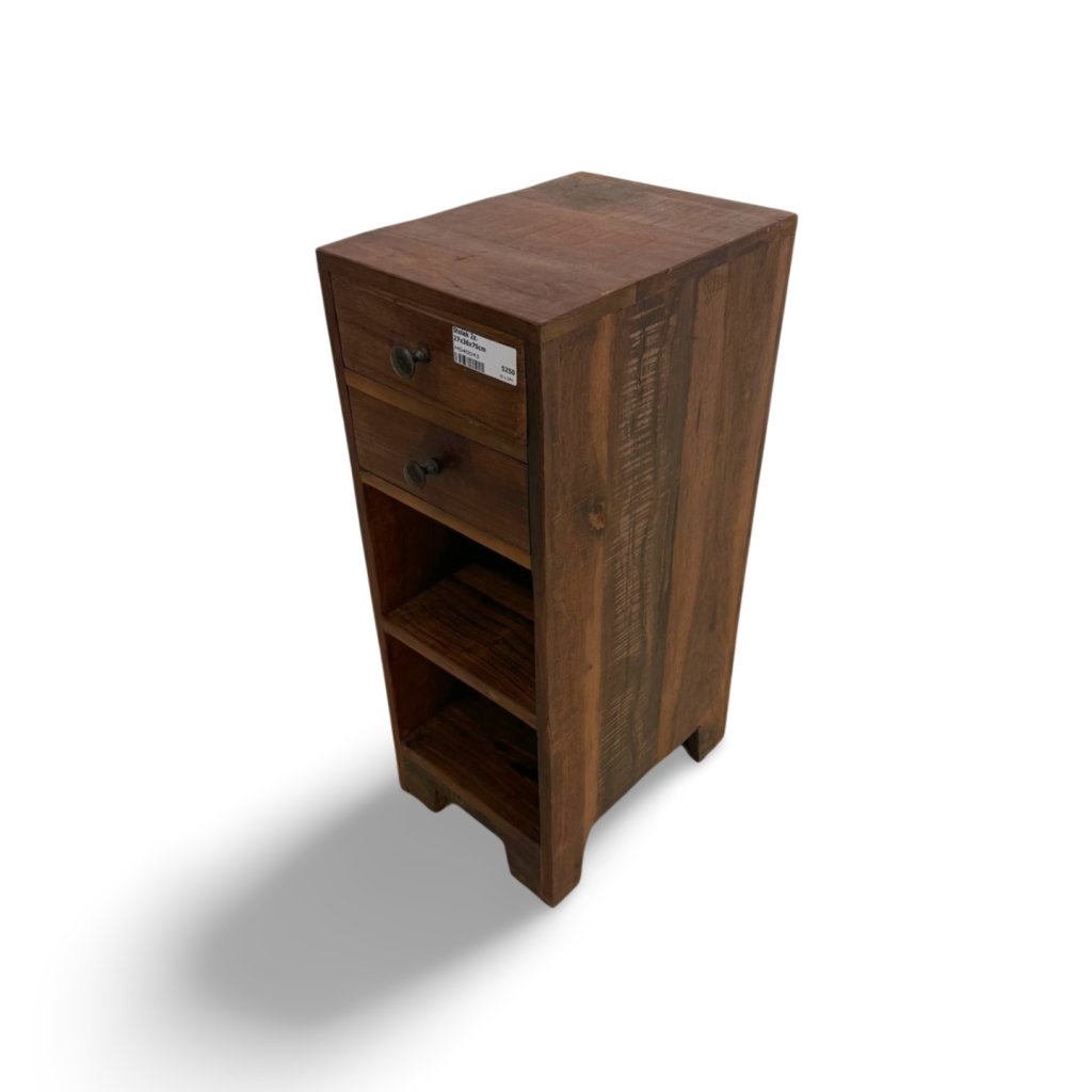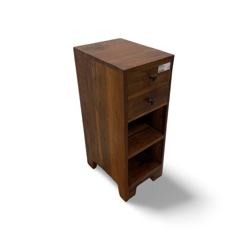 Díky svým rozměrům se skvěle hodí jako noční stolek do ložnice, odkládací stolek do obývacího pokoje nebo praktický pomocník do pracovny či chodby. Přirozené drobné nerovnosti a barevné rozdíly dřeva podtrhují originální charakter každého kusu.