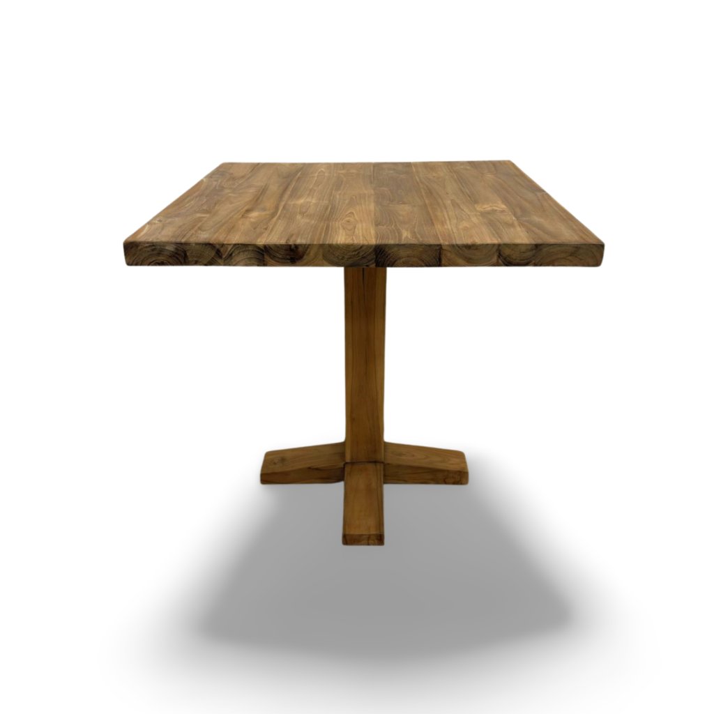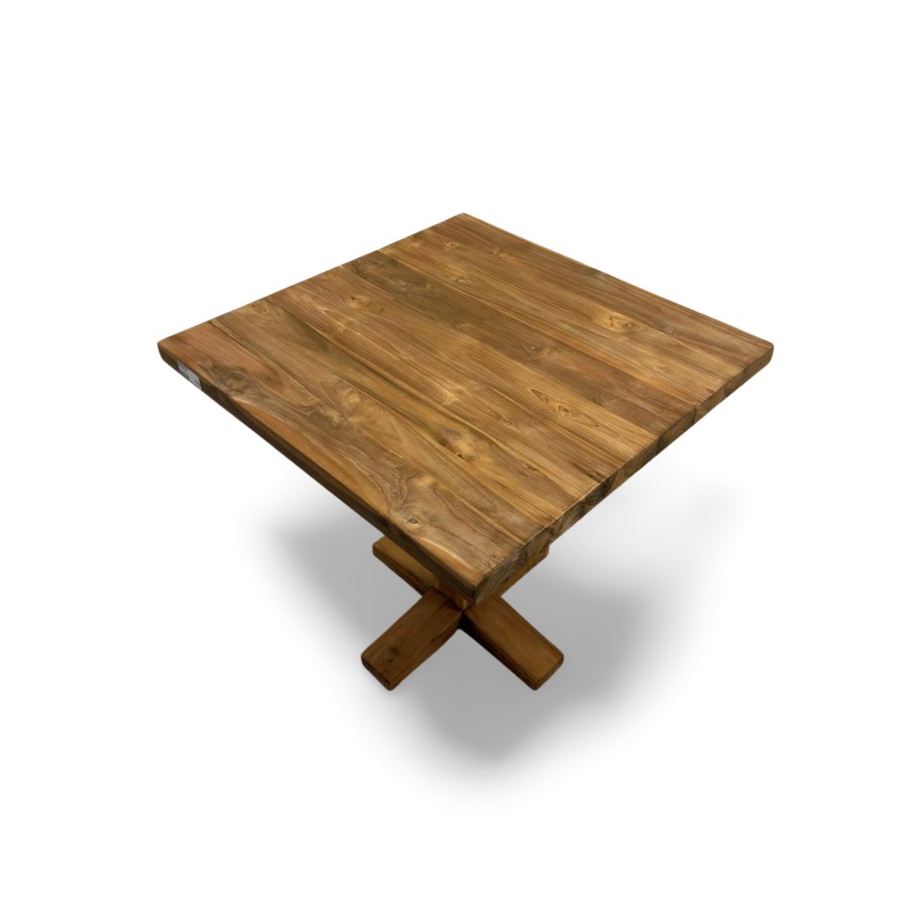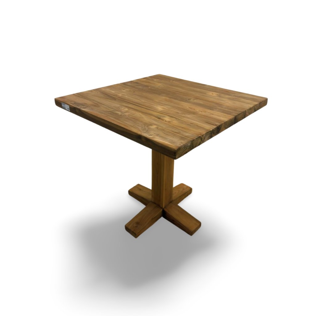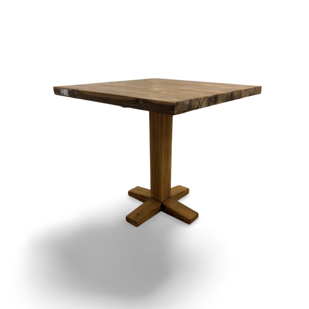 Bistro stolek z masivního teakového dřeva pochází z Indonésie, kde se teak tradičně zpracovává s důrazem na pevnost, dlouhou životnost a přirozenou krásu materiálu. Tento model vyniká čistými liniemi a stabilní středovou podnoží ve tvaru kříže, která zajišťuje pevnost a pohodlné usazení z každé strany.