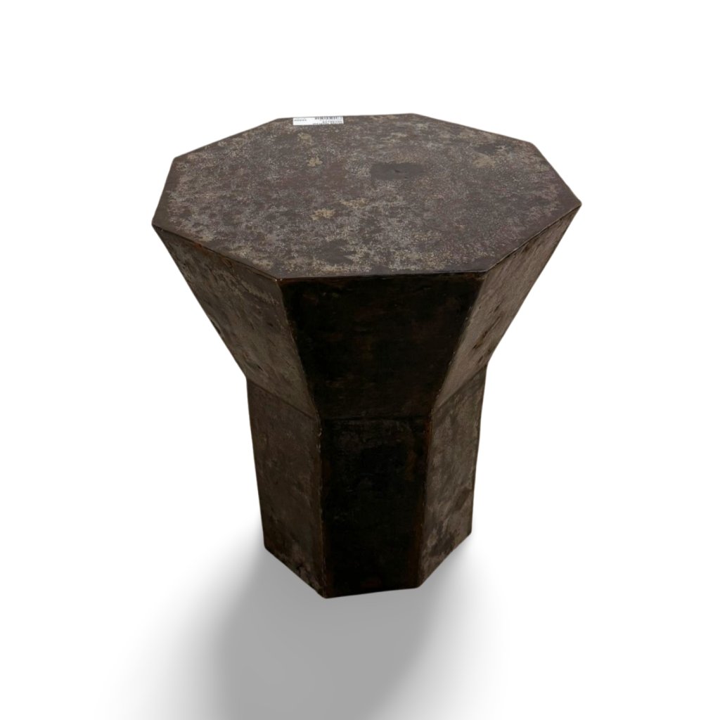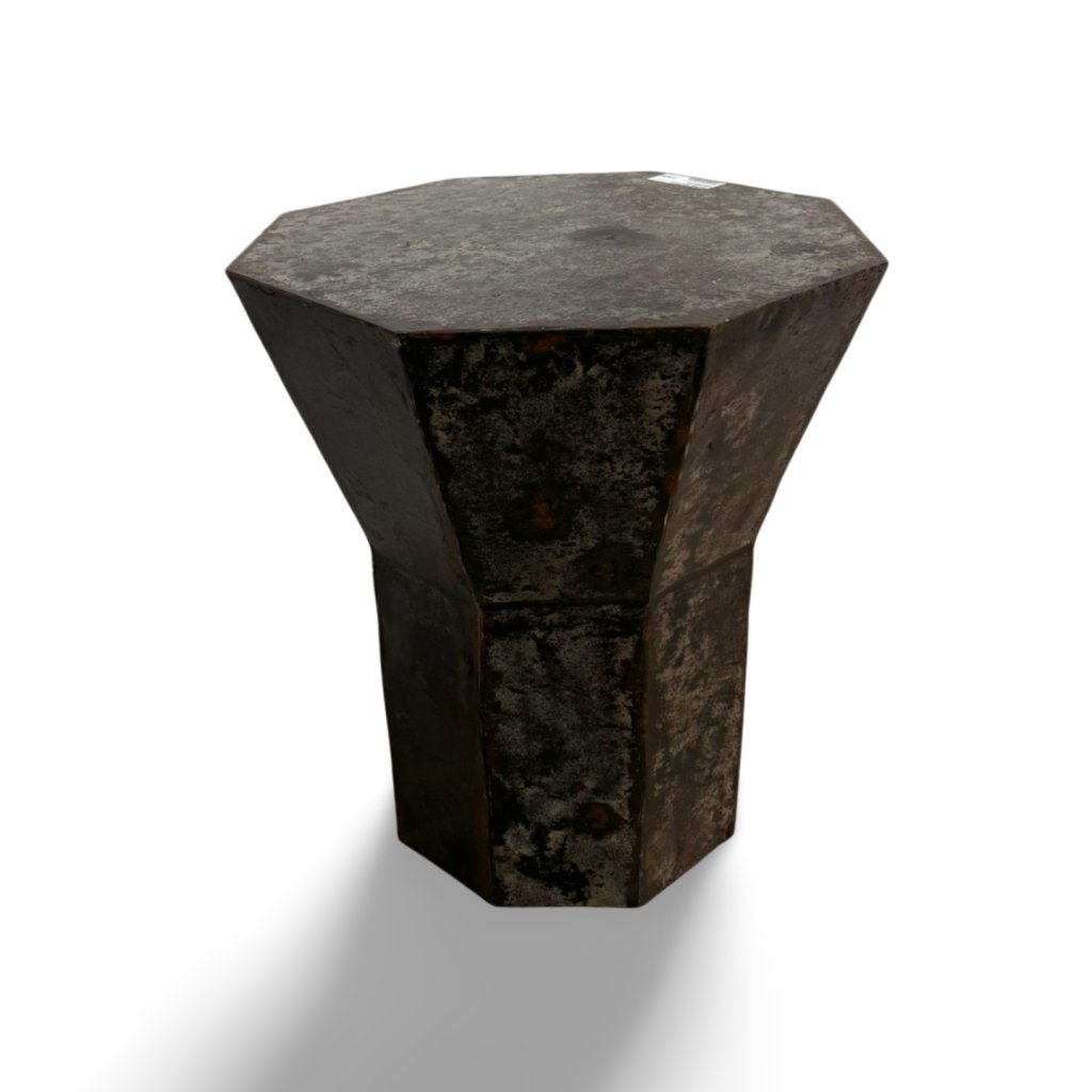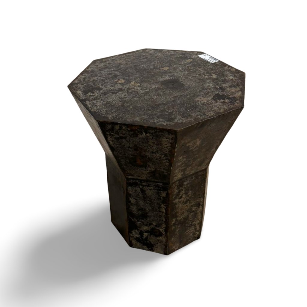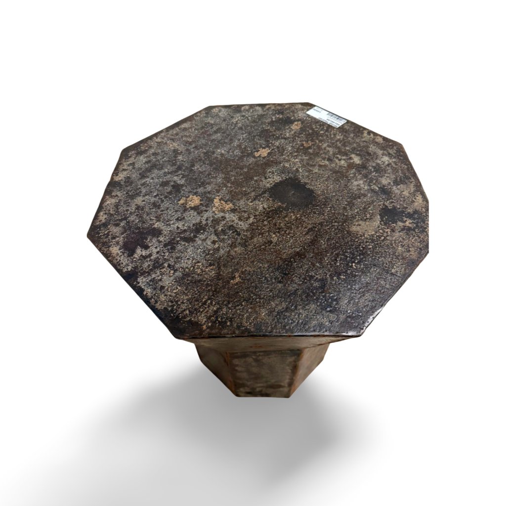 Robustní konstrukce zajišťuje vysokou stabilitu a dlouhou životnost. Osmihranná horní deska dodává stolku charakter a odkazuje na tradiční indické řemeslo. Díky svému industriálnímu a lehce surovému vzhledu se skvěle hodí do moderních, loftových i eklektických interiérů.