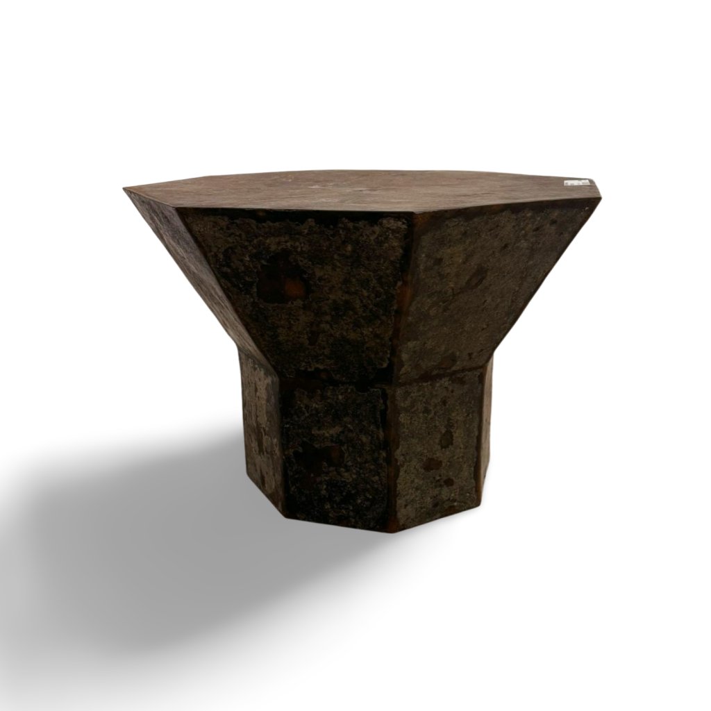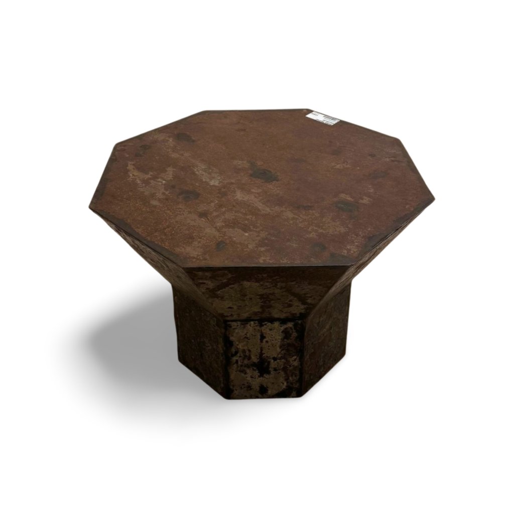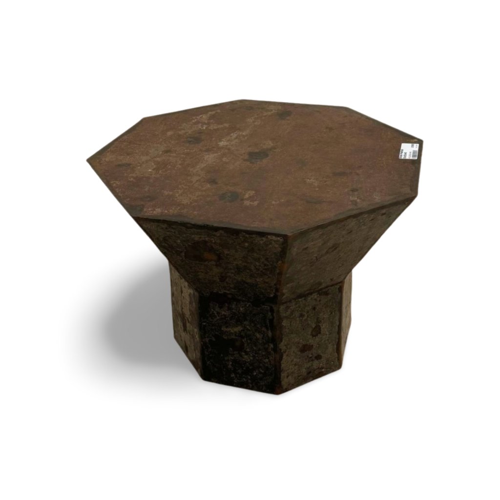 Robustní konstrukce zajišťuje vysokou stabilitu a dlouhou životnost. Osmihranná horní deska dodává stolku charakter a odkazuje na tradiční indické řemeslo. Díky svému industriálnímu a lehce surovému vzhledu se skvěle hodí do moderních, loftových i eklektických interiérů.