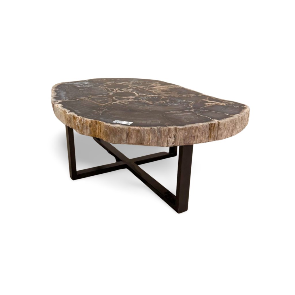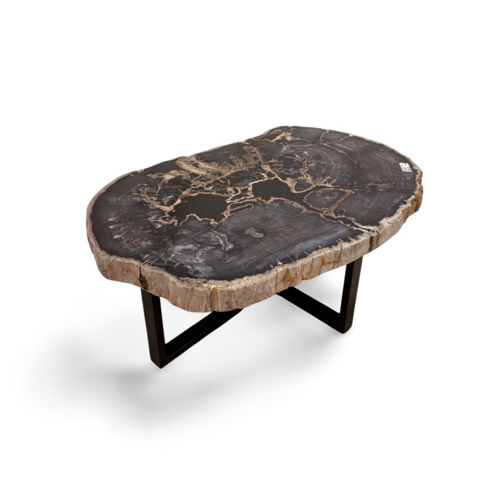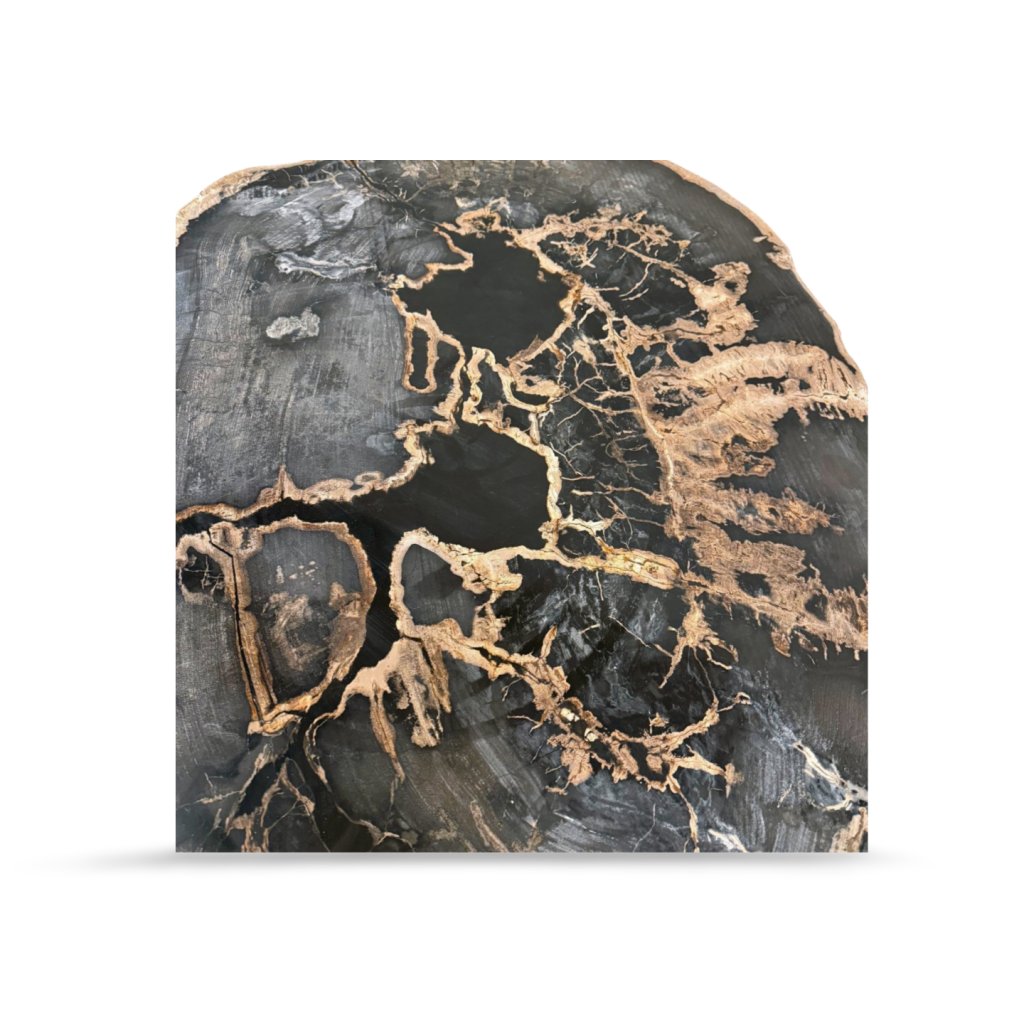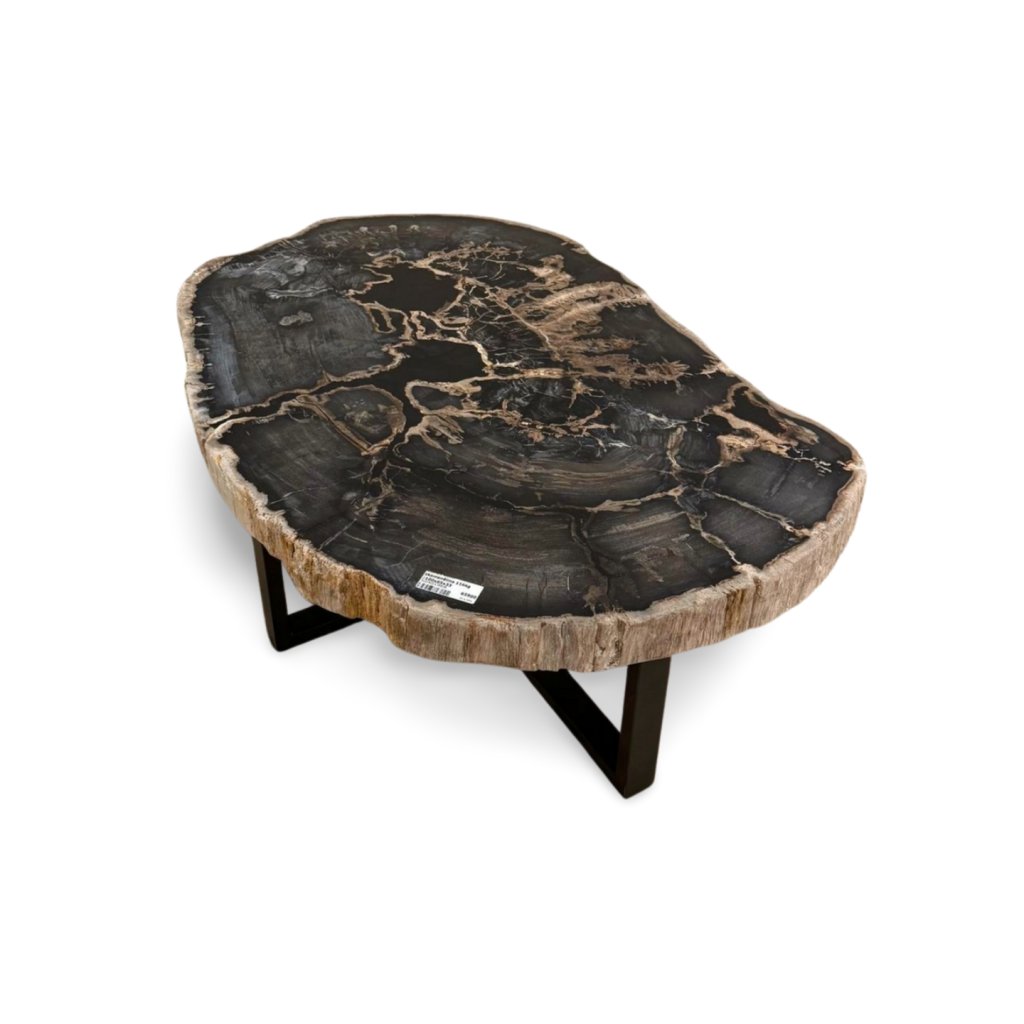 Tento konferenční stolek je vyroben z pravého zkamenělého dřeva, které vznikalo po miliony let postupnou mineralizací původního kmene. Výsledkem je mimořádně tvrdý, těžký a vizuálně fascinující materiál s jedinečnou kresbou, kterou nelze žádným způsobem zopakovat.