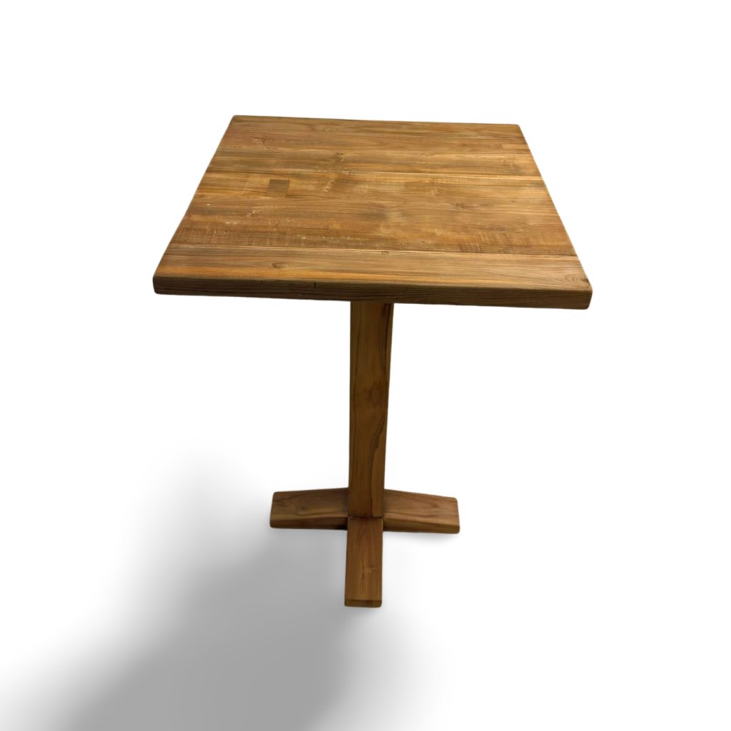 Bistro barový stolek z masivního teakového dřeva je ideální volbou do stylových interiérů i gastronomických provozů. Díky své výšce se perfektně hodí k barovým židlím a vytváří příjemné místo pro rychlou kávu, sklenku vína nebo neformální posezení.