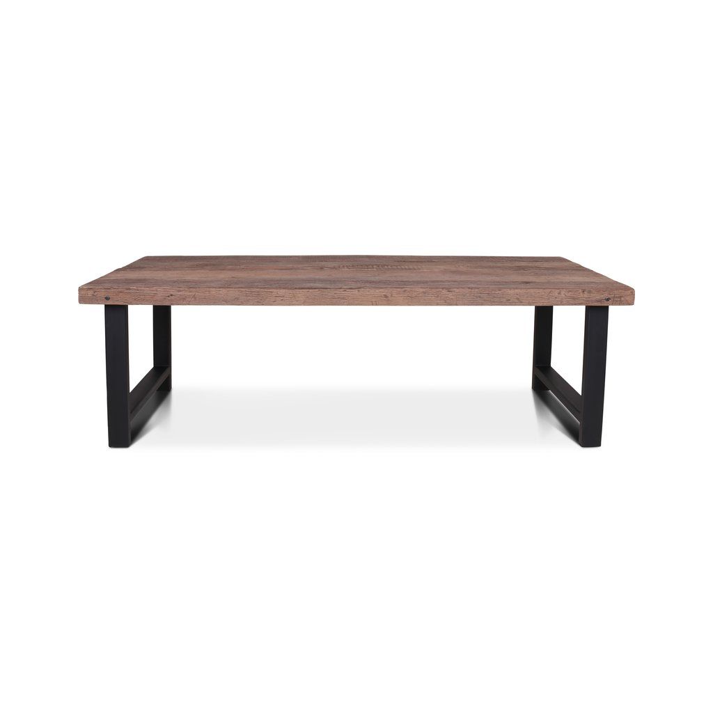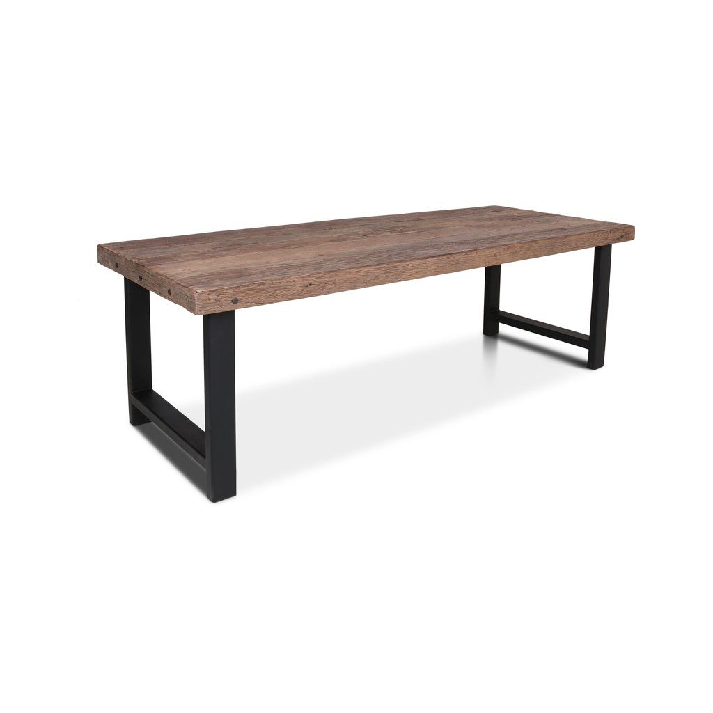 Masivní stůl Elba z jilmového dřeva z Indie s pevnou kovovou podnoží. Originální kresba dřeva dělá z každého kusu jedinečný prvek interiéru.