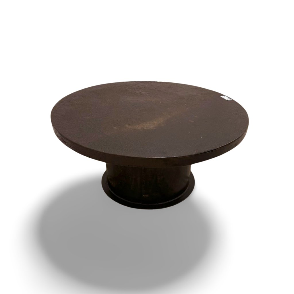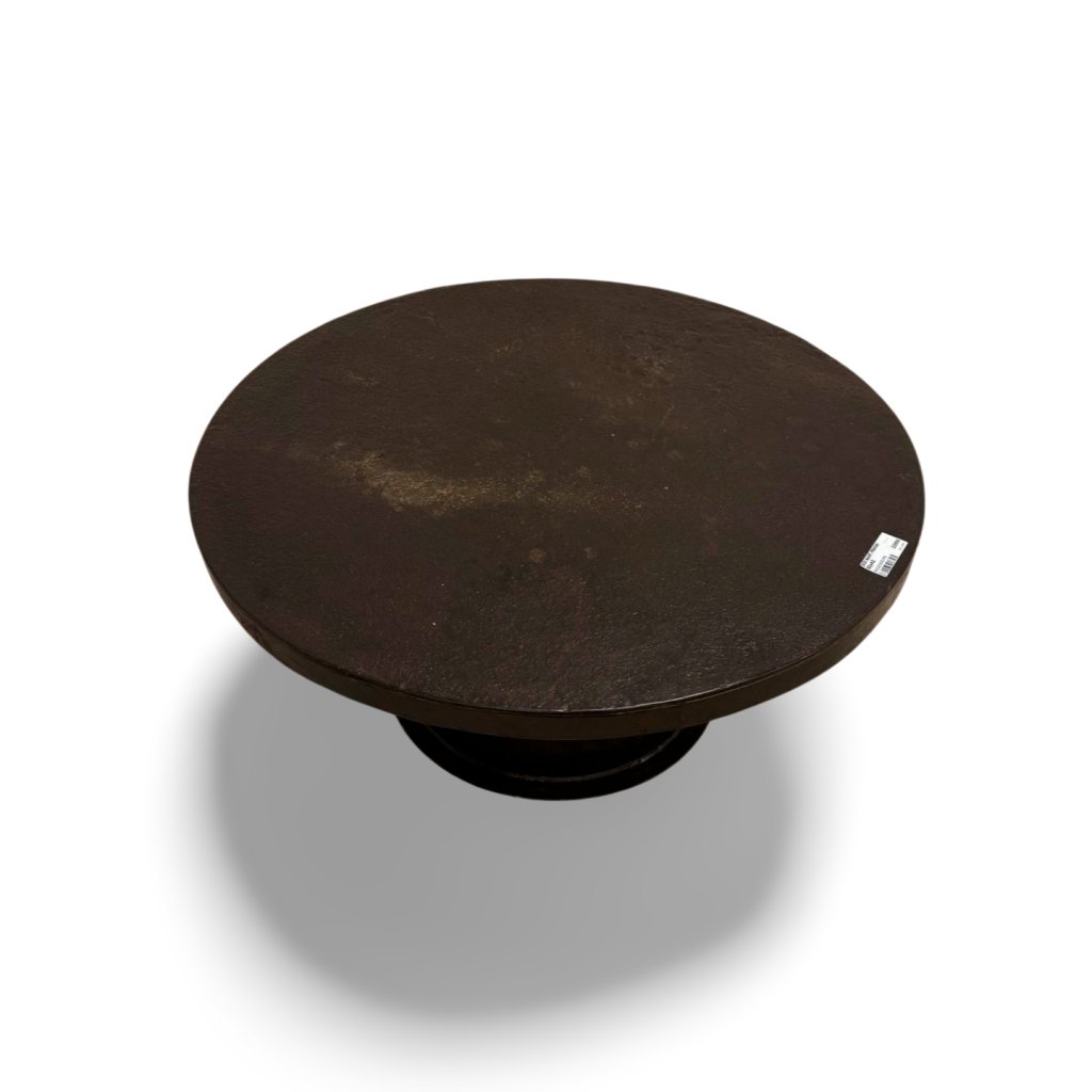 Tento originální kovový stolek pochází z Indie a je vyrobený z masivního kovu s tmavou patinou. Kulatá deska a stabilní centrální podnož mu dodávají nadčasový, lehce industriální charakter, který skvěle doplní moderní, loftové i exoticky laděné interiéry.