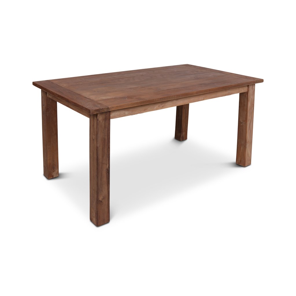 Tento stůl je vyroben z recyklovaného teakového dřeva, které pochází z původních staveb a nábytku, a nese v sobě příběh času i charakter přírodního materiálu. Každý kus je originál s autentickou strukturou, barevnými nuancemi a stopami po původním využití. Robustní konstrukce a nadčasový design dodávají stolu osobitost a činí z něj výrazný prvek do interiéru i exteriéru.