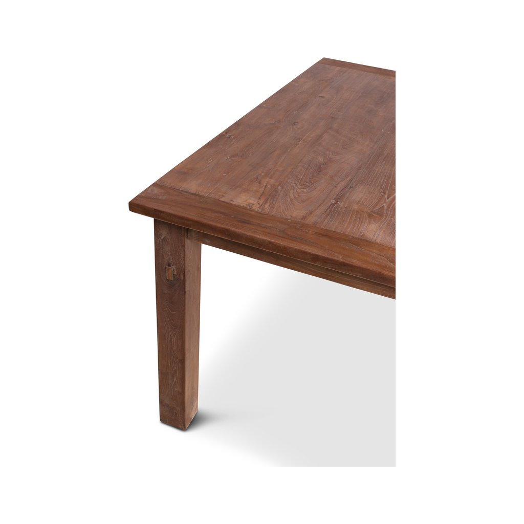 Tento stůl je vyroben z recyklovaného teakového dřeva, které pochází z původních staveb a nábytku, a nese v sobě příběh času i charakter přírodního materiálu. Každý kus je originál s autentickou strukturou, barevnými nuancemi a stopami po původním využití. Robustní konstrukce a nadčasový design dodávají stolu osobitost a činí z něj výrazný prvek do interiéru i exteriéru.