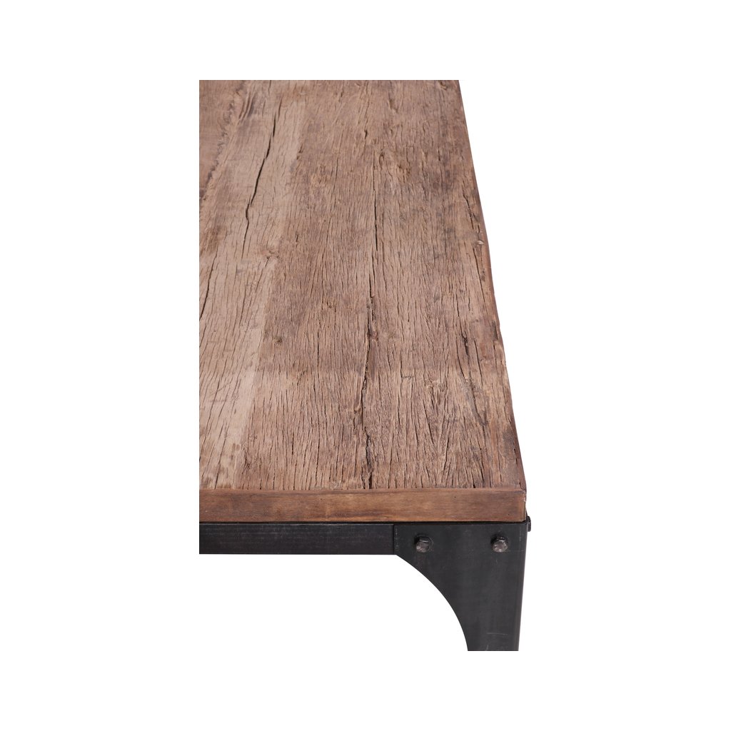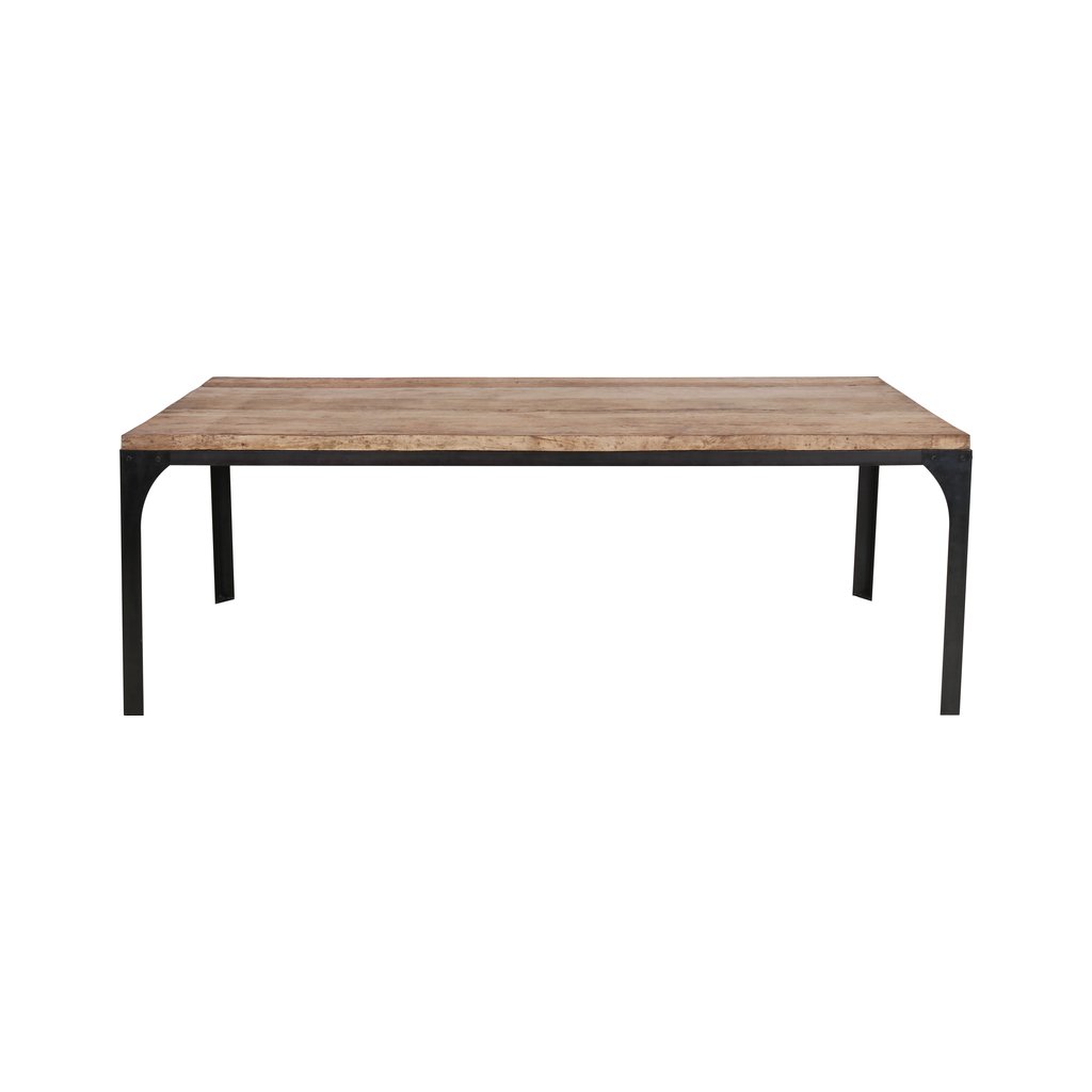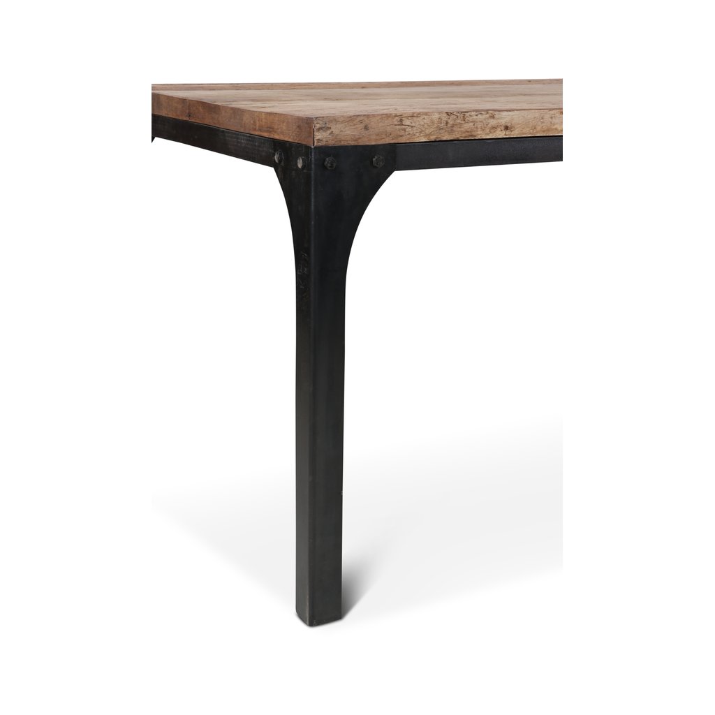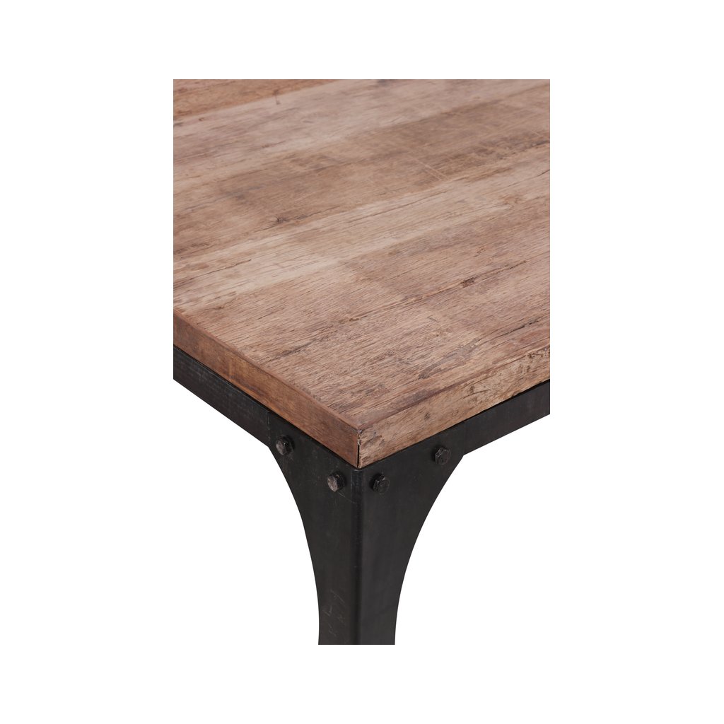 Deska z masivu působí přirozeně a teple, zatímco kovové nohy dodávají stolu industriální charakter a vysokou stabilitu. Jednoduchý tvar bez zbytečných detailů umožňuje snadné kombinování s různými typy interiérů – od moderních a industriálních až po rustikální či loftové prostory.