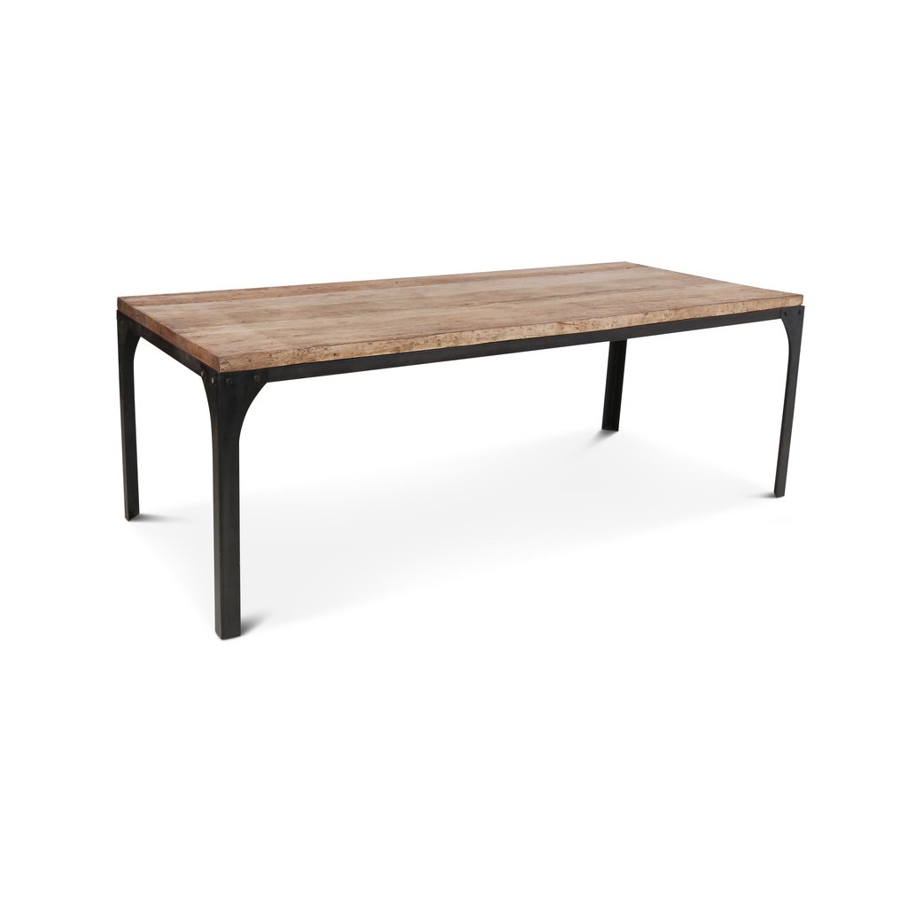 Deska z masivu působí přirozeně a teple, zatímco kovové nohy dodávají stolu industriální charakter a vysokou stabilitu. Jednoduchý tvar bez zbytečných detailů umožňuje snadné kombinování s různými typy interiérů – od moderních a industriálních až po rustikální či loftové prostory.