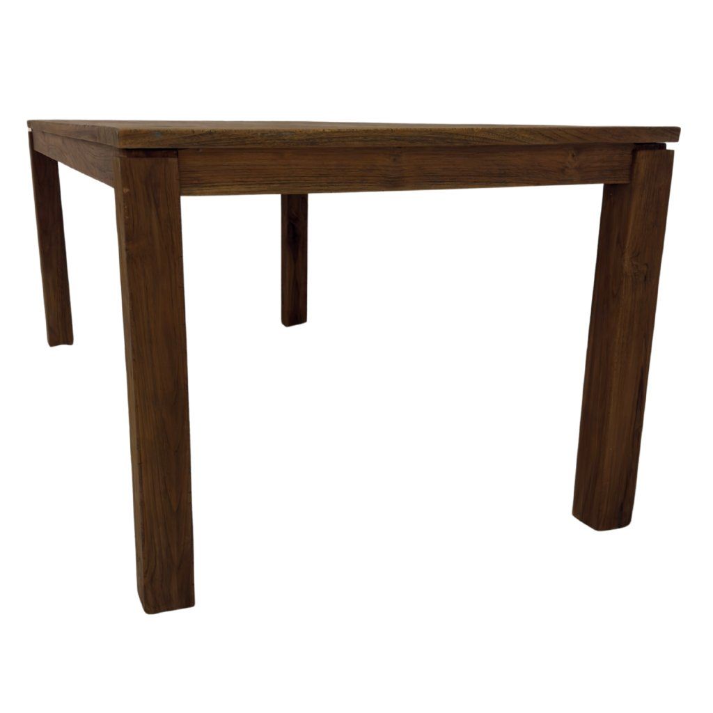 Masivní venkovní stůl z teakového dřeva z Indonésie. Vhodný pro celoroční použití bez nutnosti náročné údržby.