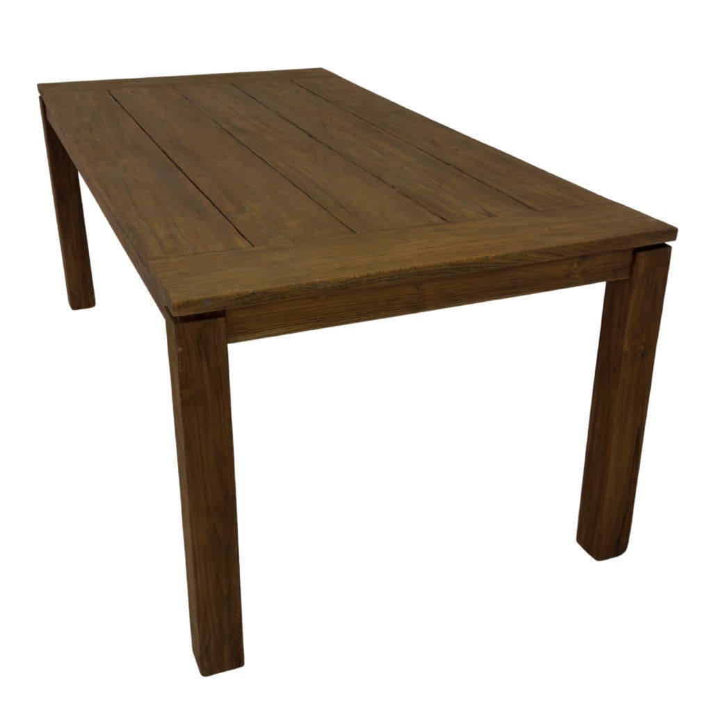 Stůl z masivního recyklovaného teaku s přirozenou kresbou a jedinečným charakterem. Nadčasový kousek s příběhem.