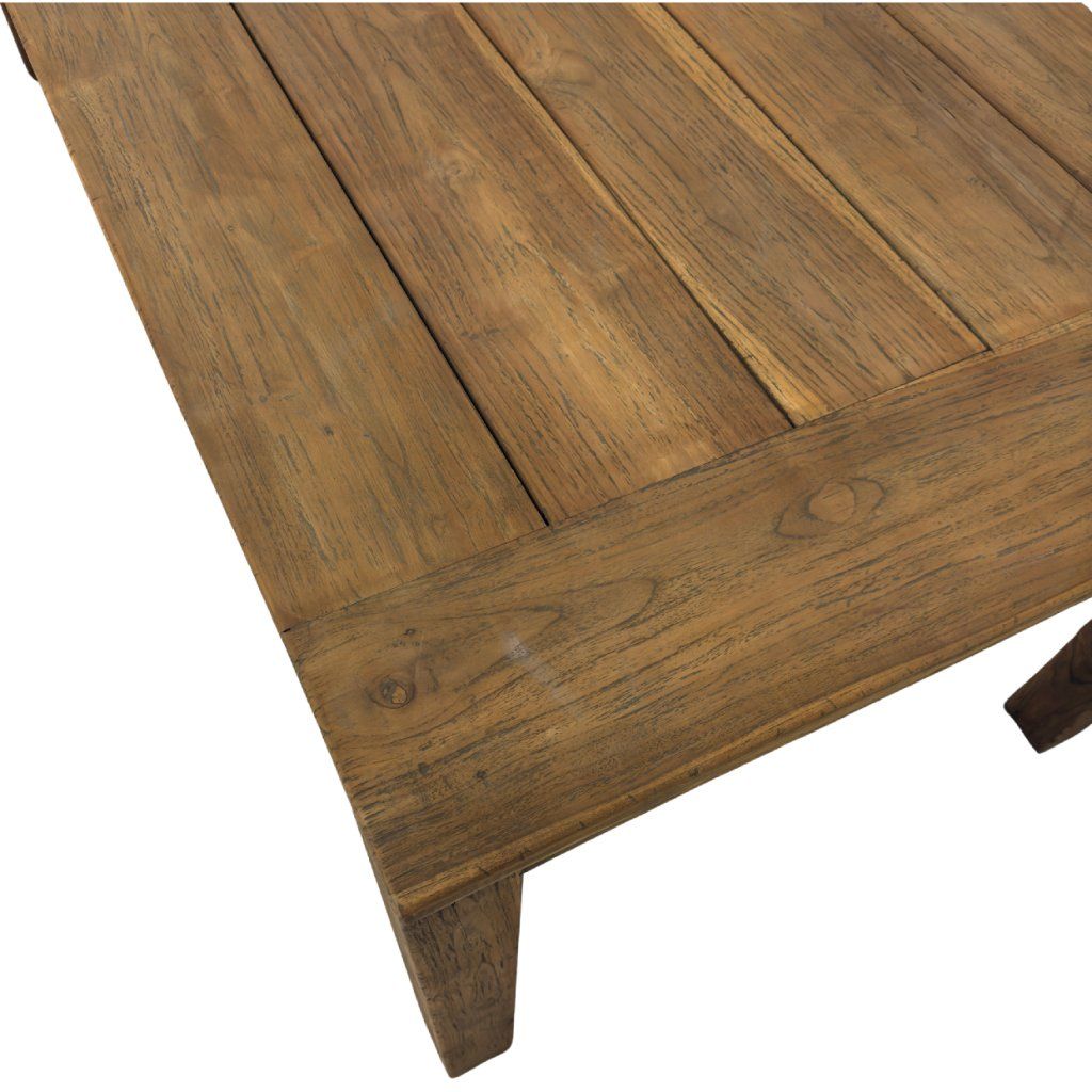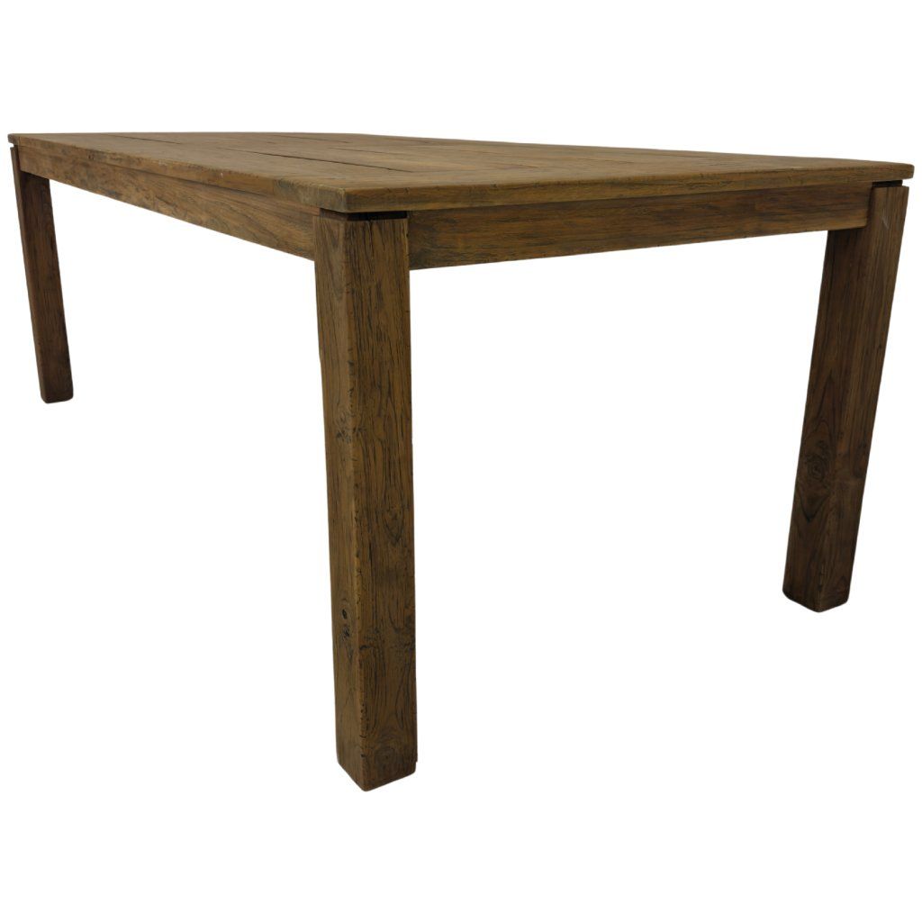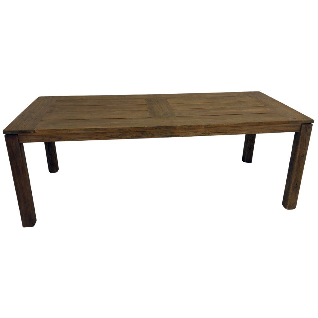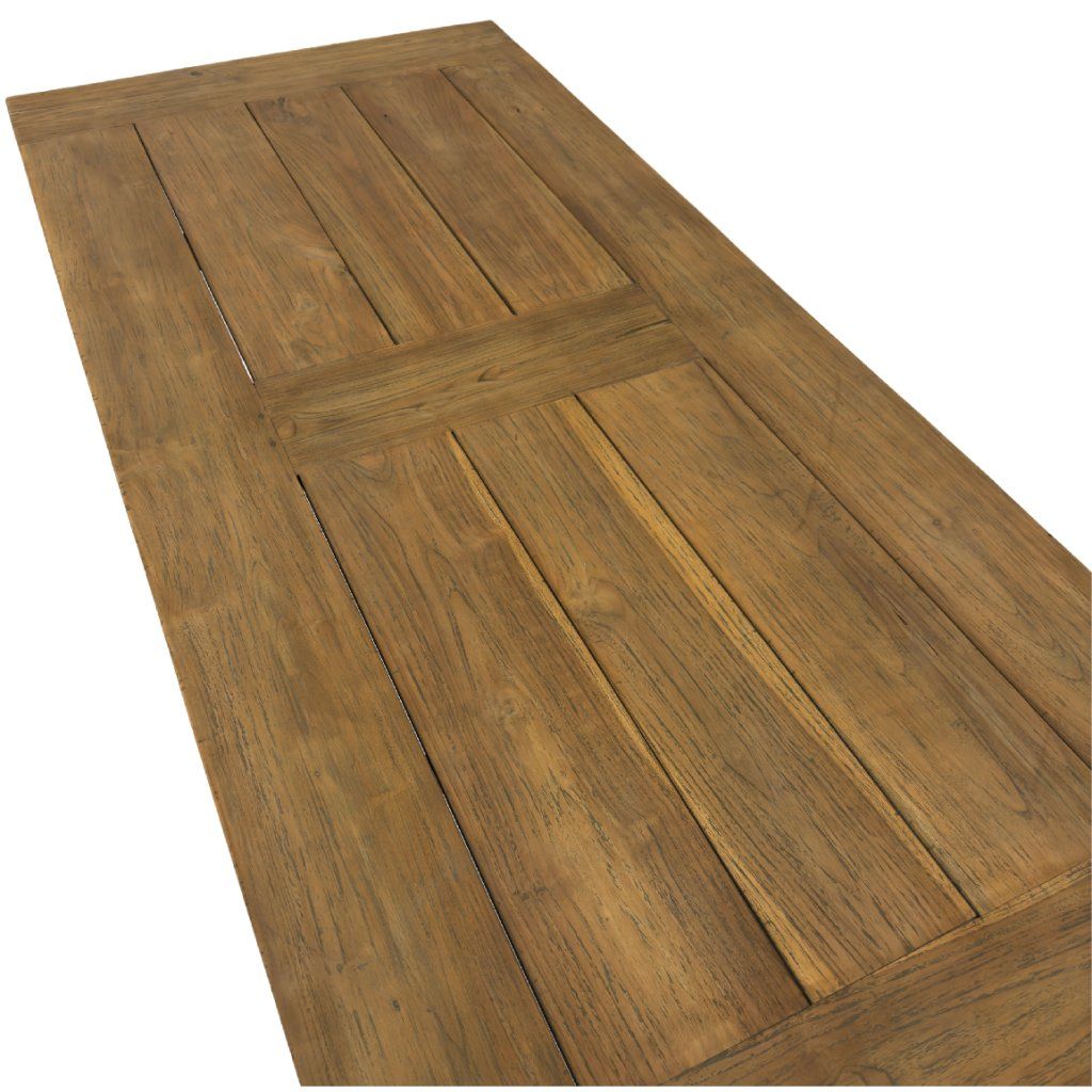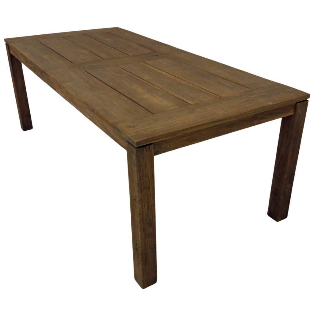 Masivní venkovní stůl Alwin z teakového dřeva z Indonésie. Odolný materiál vhodný pro celoroční použití bez nutnosti náročné údržby.