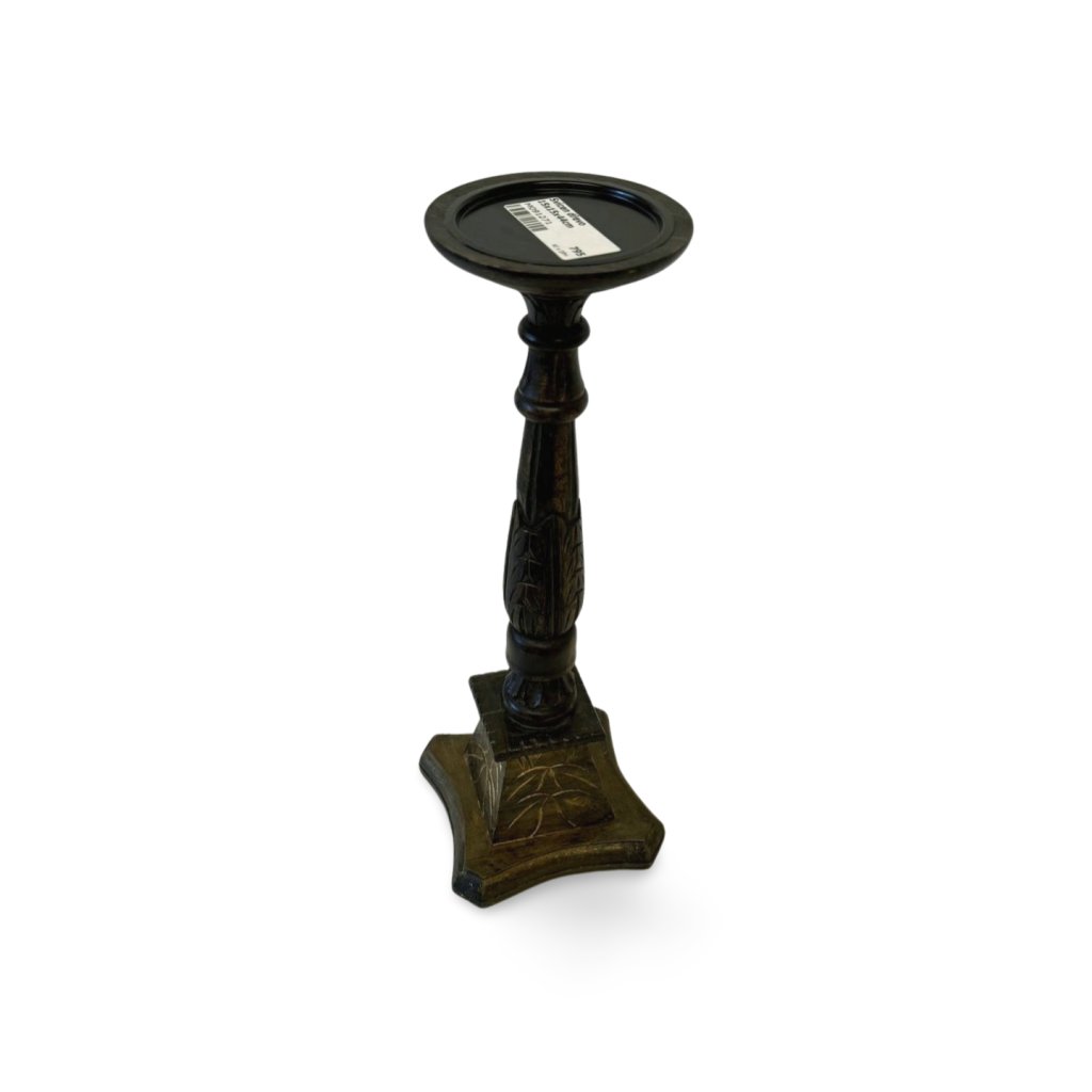 Stylový dřevěný svícen zaujme svou štíhlou siluetou a dekorativně vyřezávanými prvky. Tmavé moření podtrhuje kresbu dřeva a dodává svícnu elegantní, lehce koloniální charakter.