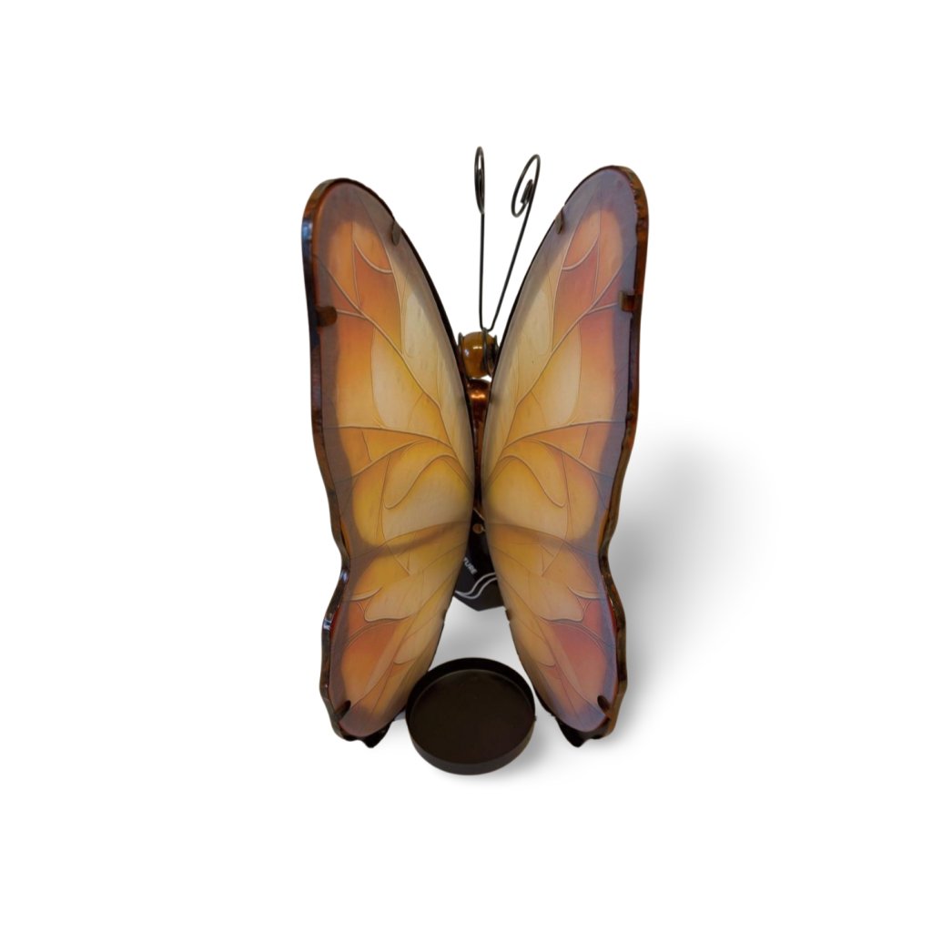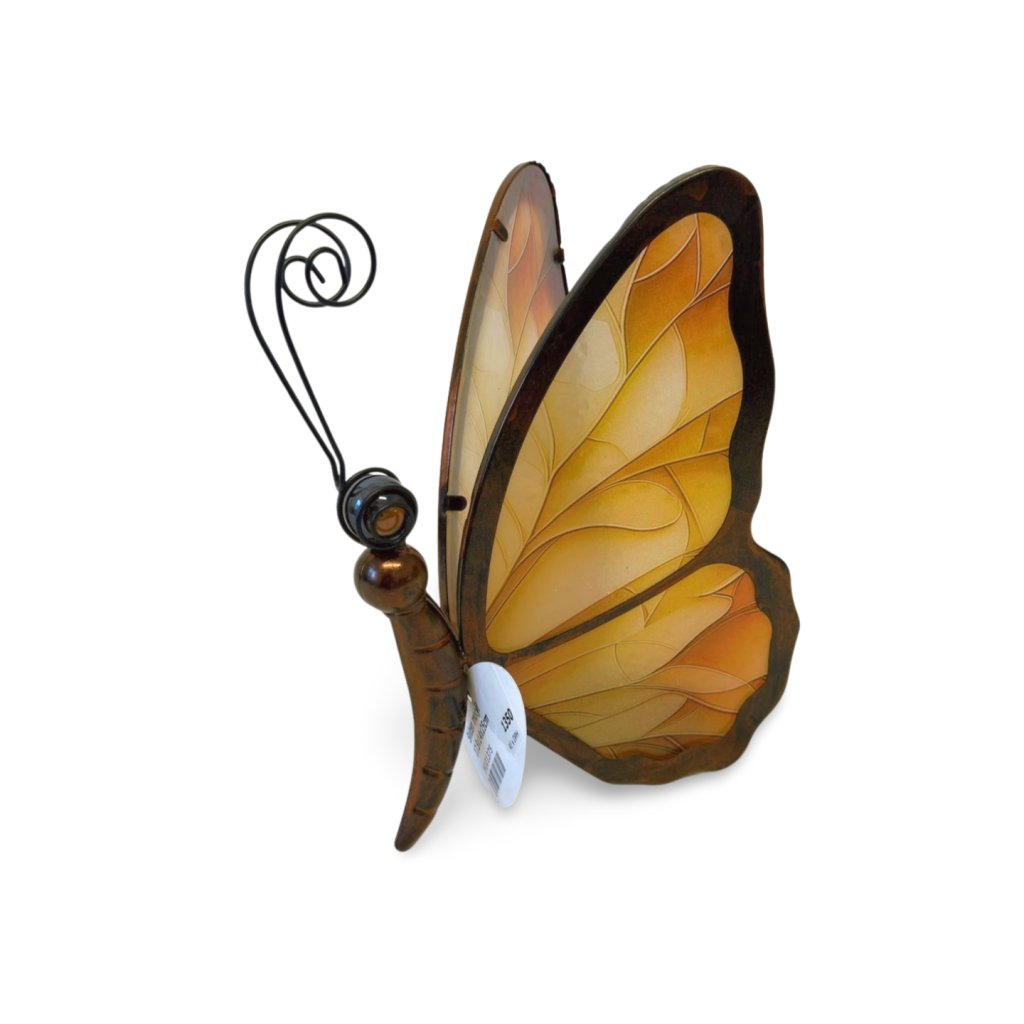 Tento oranžový skleněný svícen ve tvaru motýla zaujme na první pohled svými teplými barvami a jemně strukturovaným sklem. Oranžové odstíny připomínají zapadající slunce a po zapálení svíčky se krásně rozsvítí do měkkých, uklidňujících tónů.