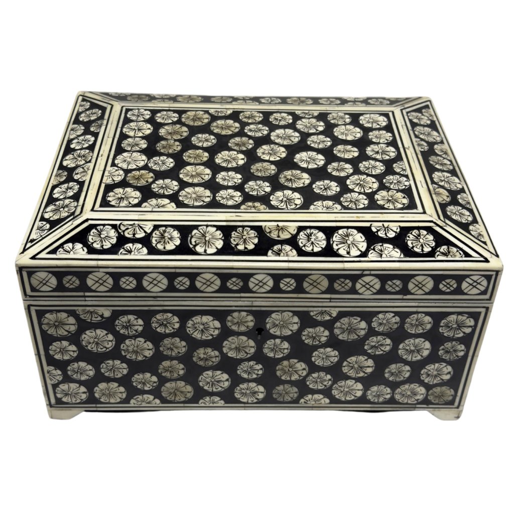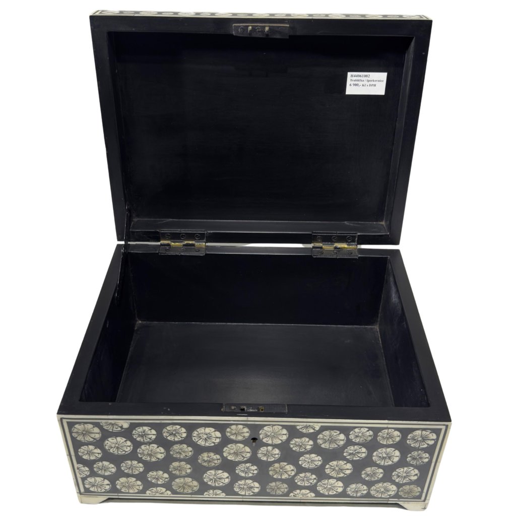 Tato elegantní čínská truhlička v kontrastní černobílé kombinaci je mistrovským dílem tradičního řemesla. Jemné florální zdobení dodává na sofistikovanosti a nadčasovém půvabu. Její kompaktní velikost ji předurčuje k využití jako šperkovnice nebo úložný prostor pro drobné cennosti. Perfektní spojení elegance a funkčnosti s nádechem orientální historie.Doplňkové parametry