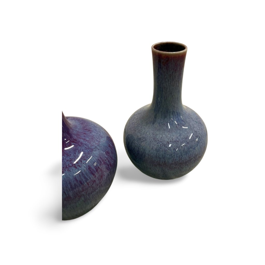 Tato čínská váza je ručně vyráběná tradiční keramickou technikou a vyniká hlubokou glazurou s jemnými barevnými přechody v odstínech modré, šedé a hnědé. Lesklý povrch dodává váze elegantní vzhled, zatímco nepravidelné tónování podtrhuje její řemeslný původ a originalitu.
