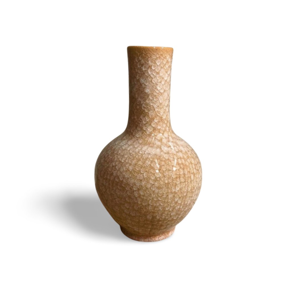 Tato čínská váza vyniká svým elegantním tvarem a ručně zpracovanou strukturou povrchu, která vytváří jemný perleťový efekt. Růžový odstín působí decentně a přirozeně doplní světlé i tmavší interiéry.