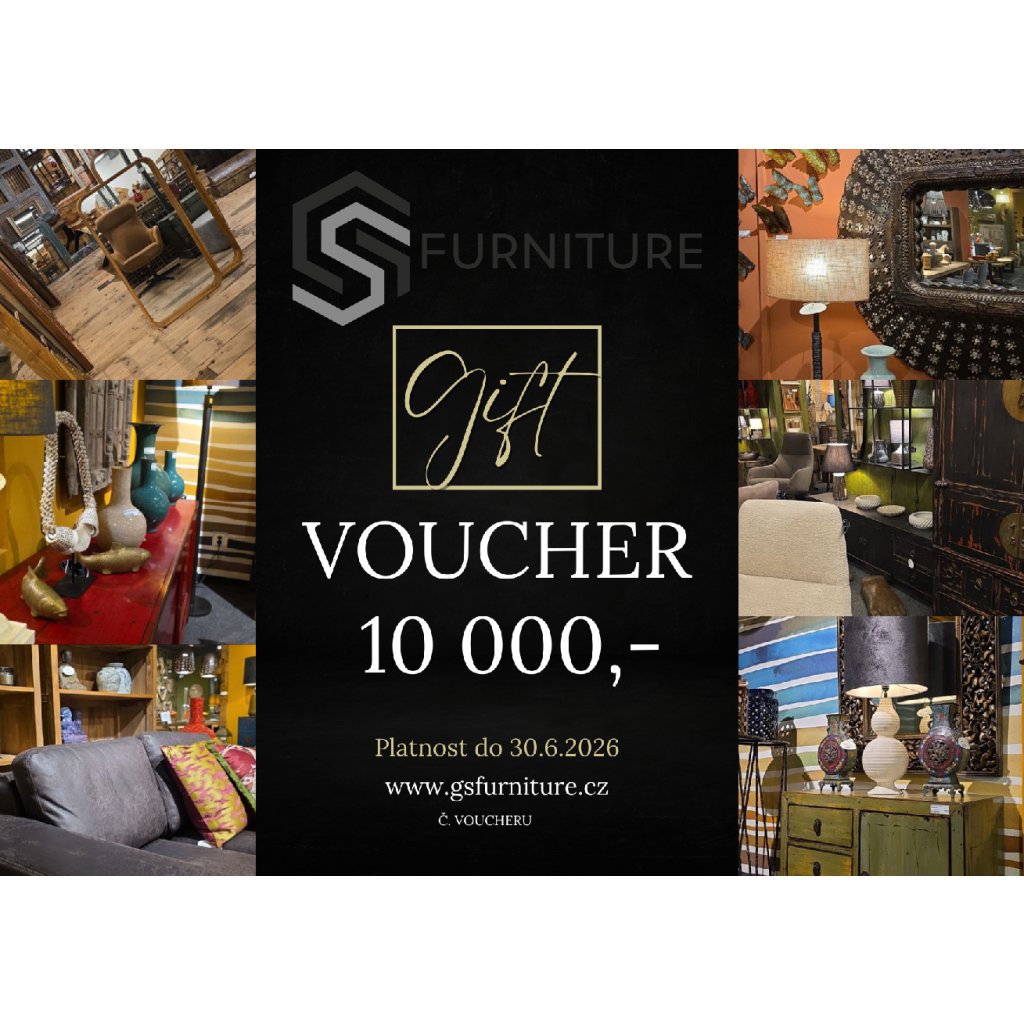 Dárkový voucher GS Furniture je ideální dárek pro každého, kdo ocení originální styl, poctivé materiály a kvalitní masivní nábytek. Obdarovaný si může vybrat jakýkoliv produkt z našeho e-shopu nebo showroomu — od jedinečných stolů a židlí až po dekorace či bytové doplňky.